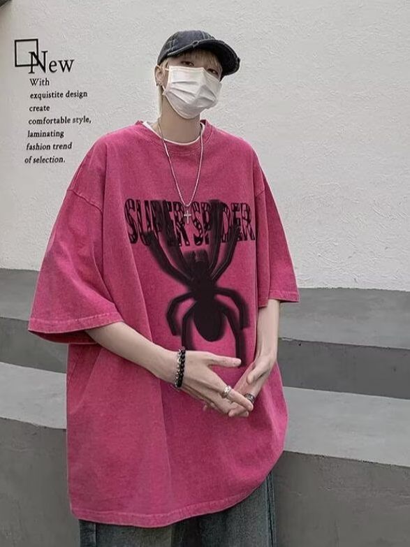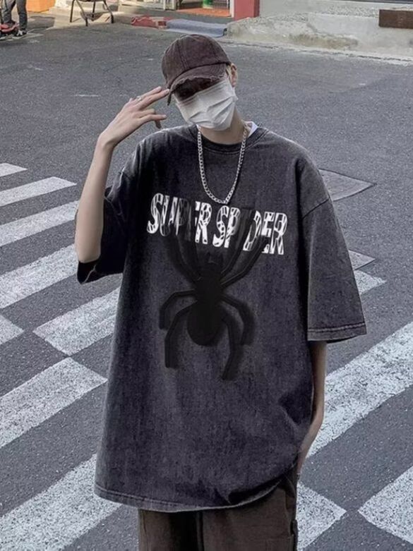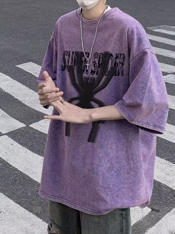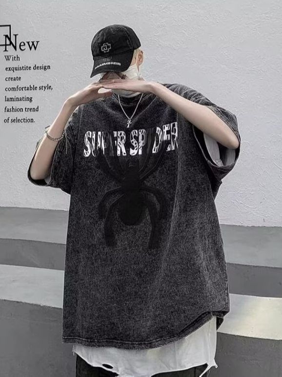 短袖T恤男款夏季潮牌宽松大码纯棉半袖学生美式重磅水洗做旧体恤
