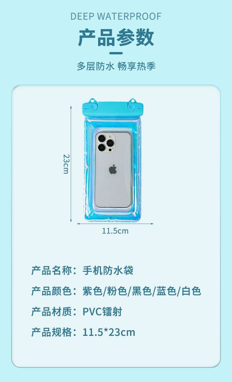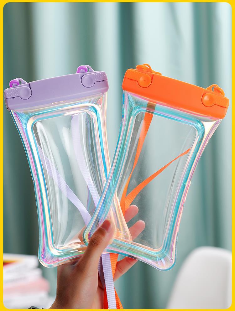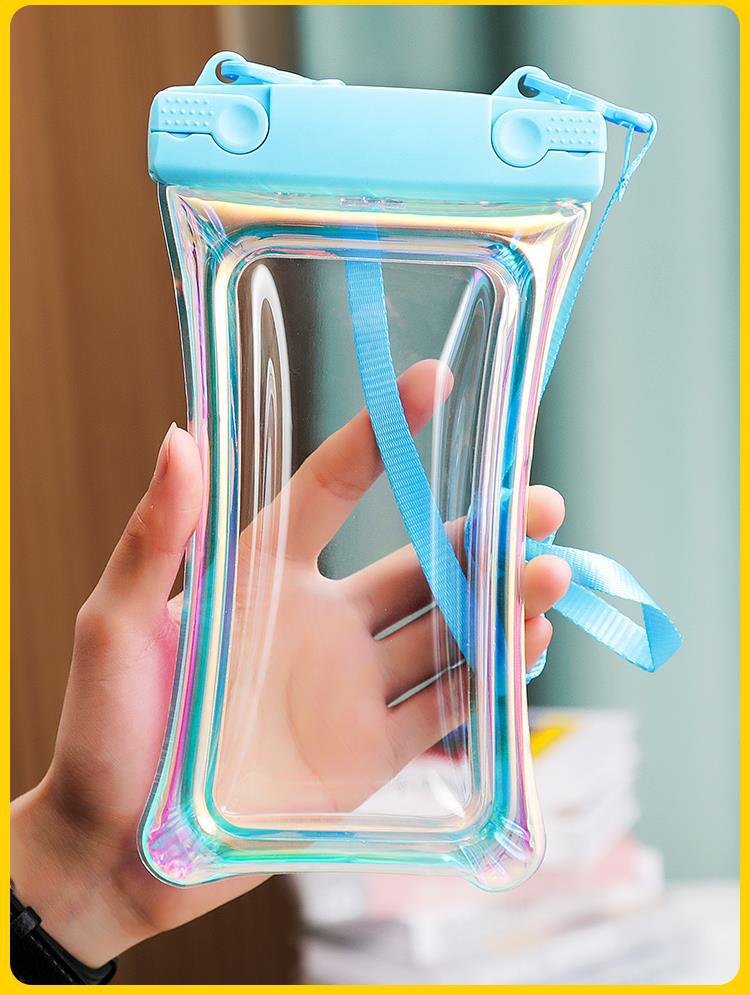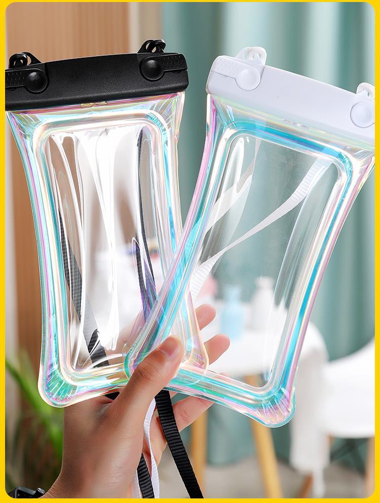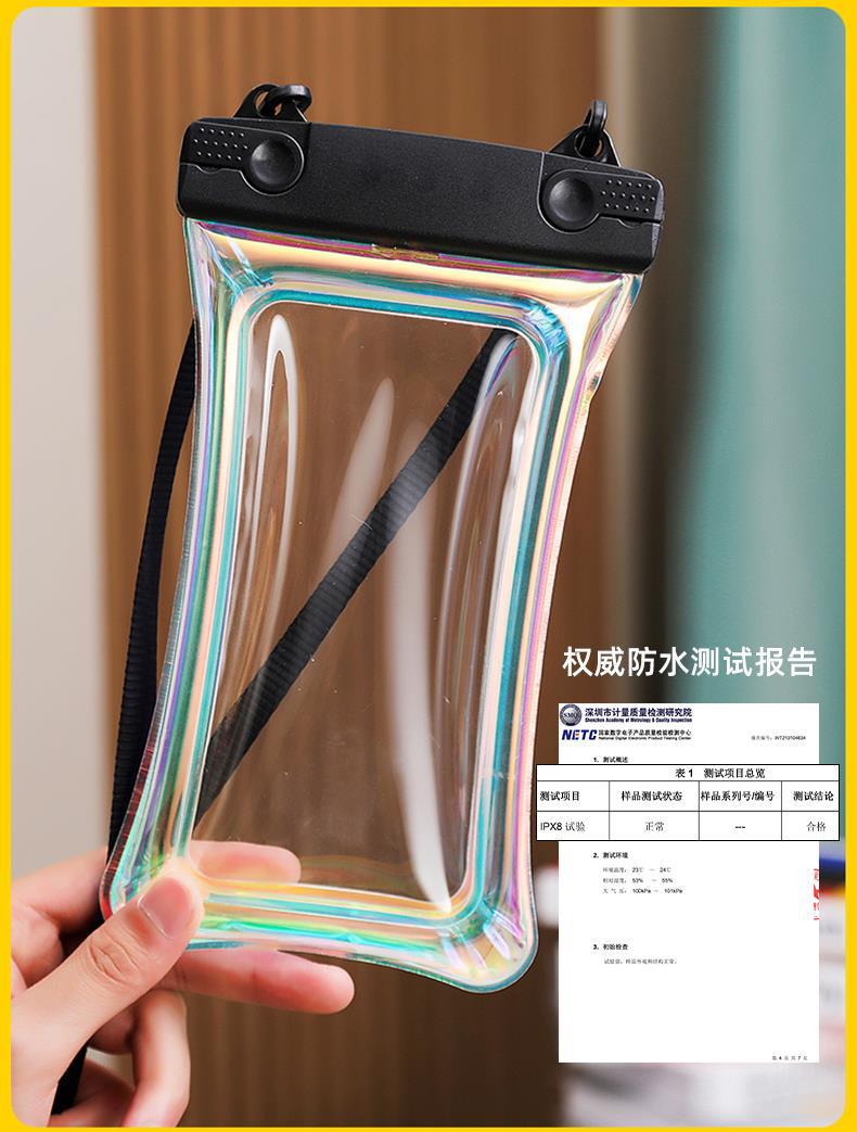 可漂浮镭射手机防水袋触屏游泳水上乐园漂流透明手机防水套带气囊