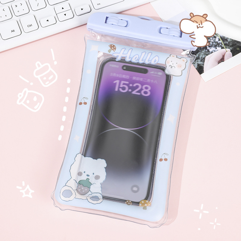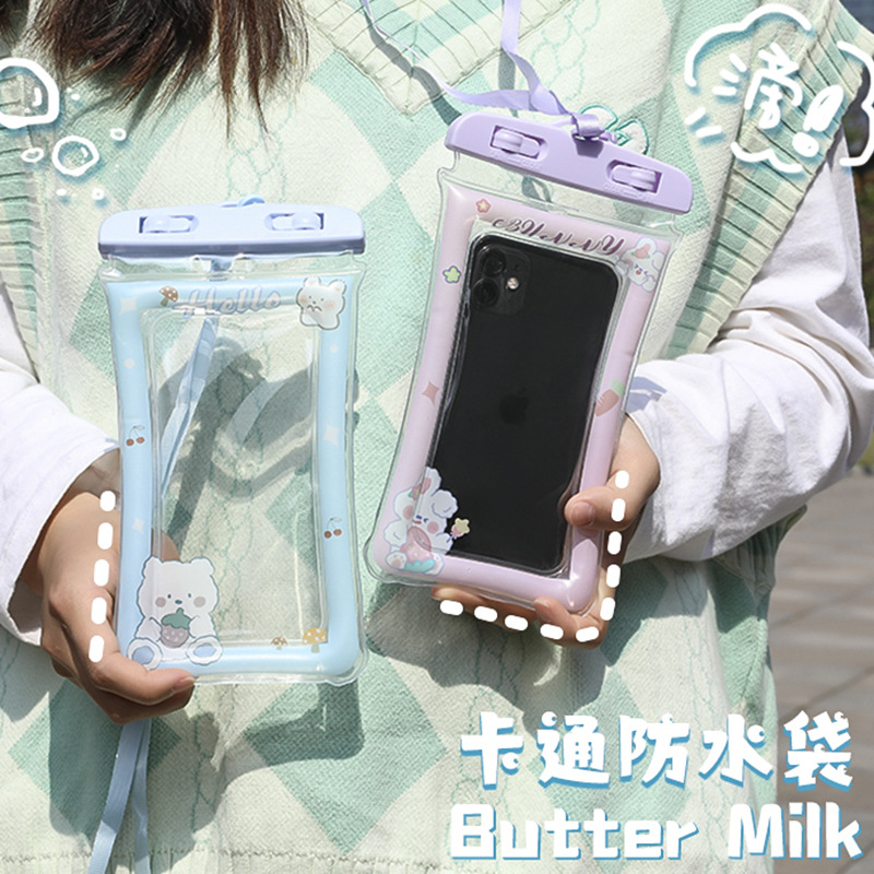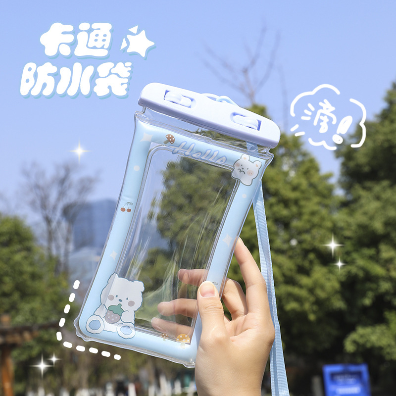 可爱卡通手机防水袋气囊流沙防震袋可触屏保护套露营游泳手机袋子