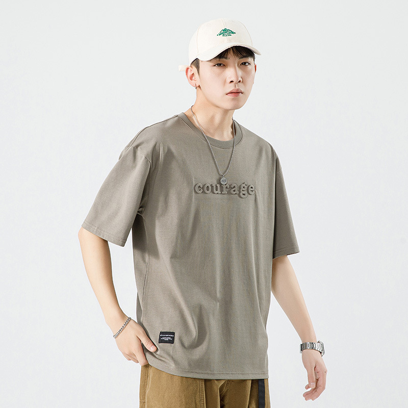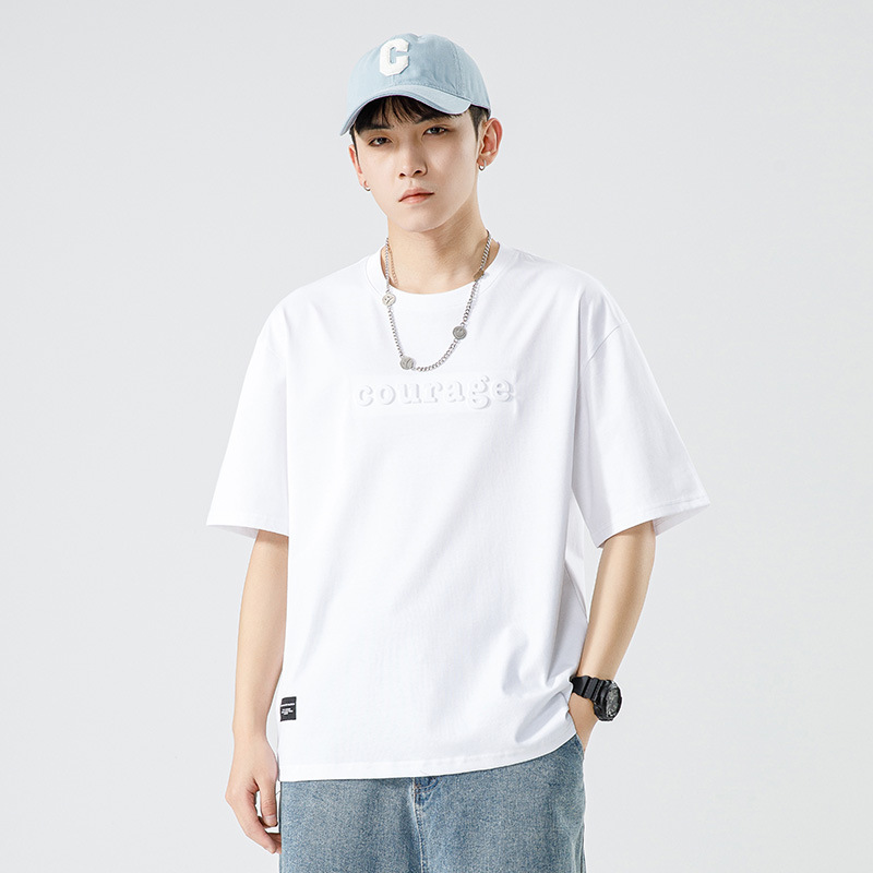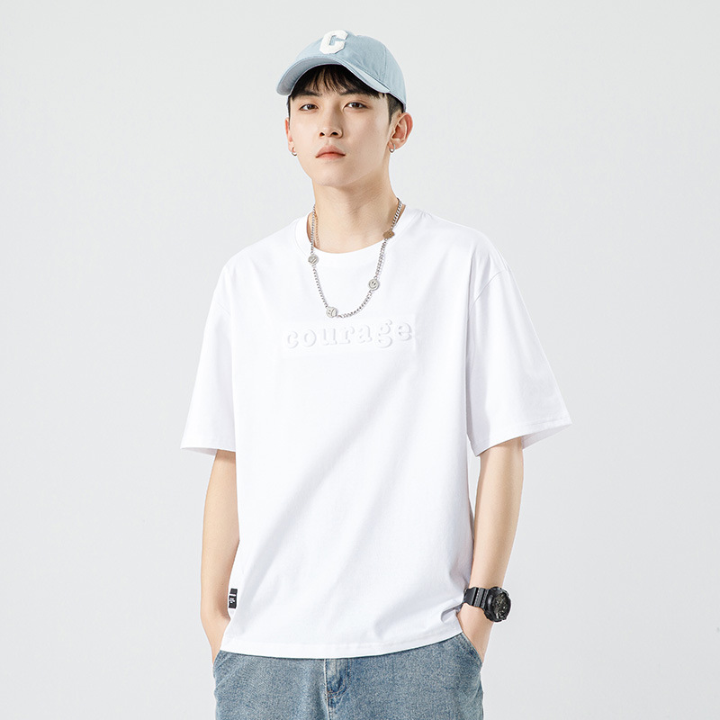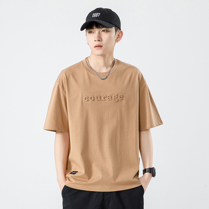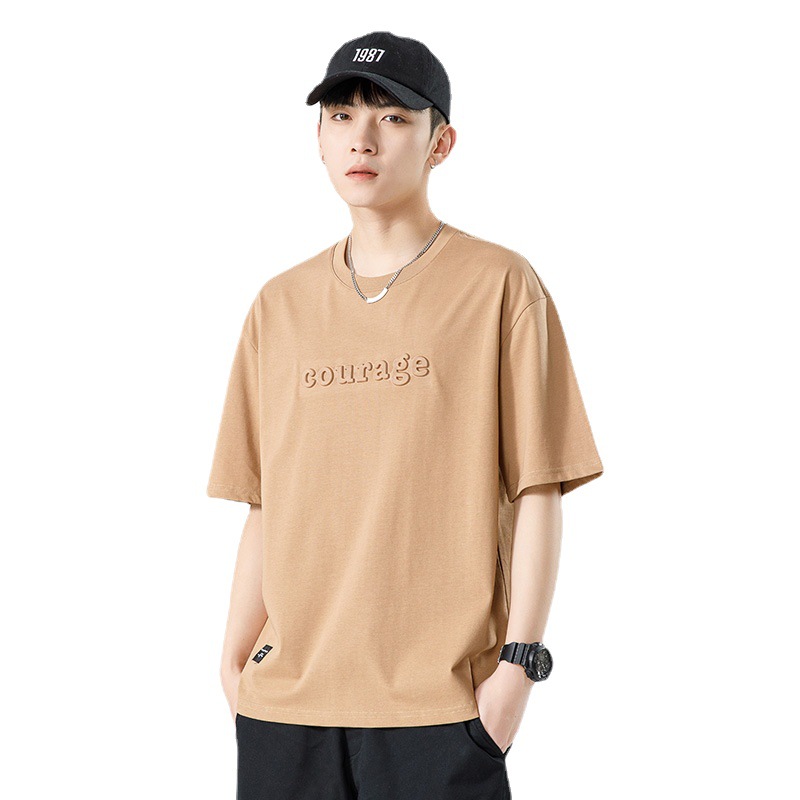 鲲海鹏云日系男装夏季重磅短袖t恤男美式潮牌钢印男士宽松打底衫