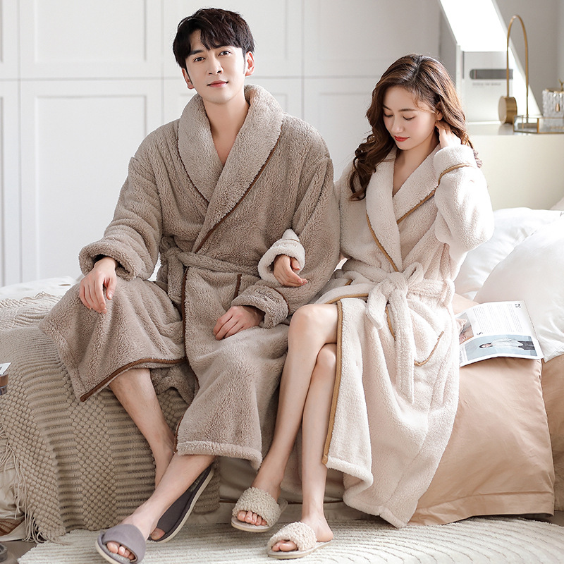 珊瑚绒睡袍男女士秋冬长款过膝浴袍大码法兰绒加绒加厚情侣睡袍