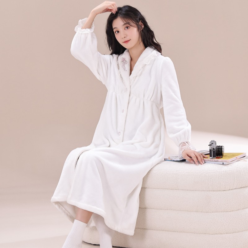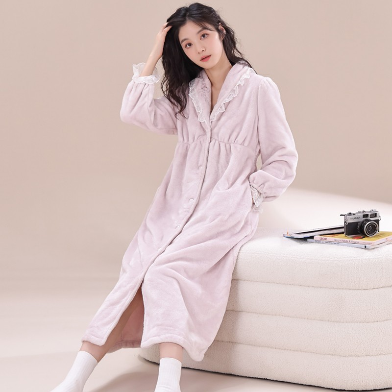 珊瑚绒睡袍女冬季长款浴袍短袖法式高级感浴衣加绒晨袍睡衣