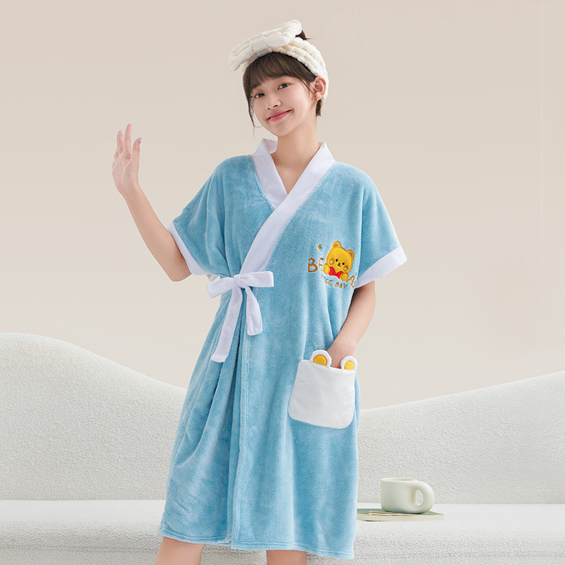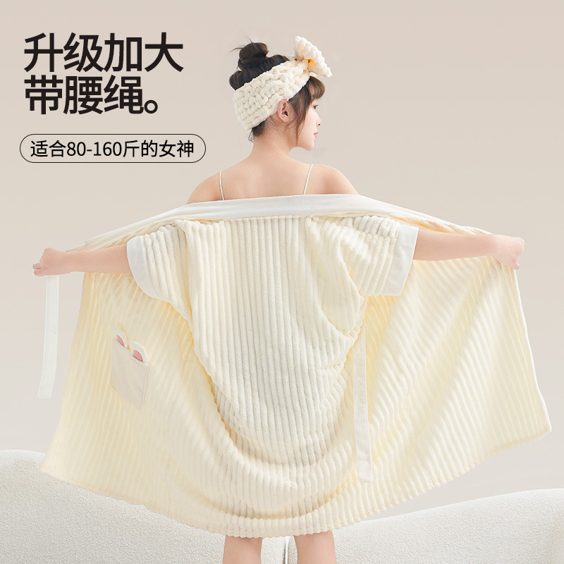 可爱卡通浴裙新款加厚浴袍比纯棉吸水速干大人可穿洗澡家用浴巾女