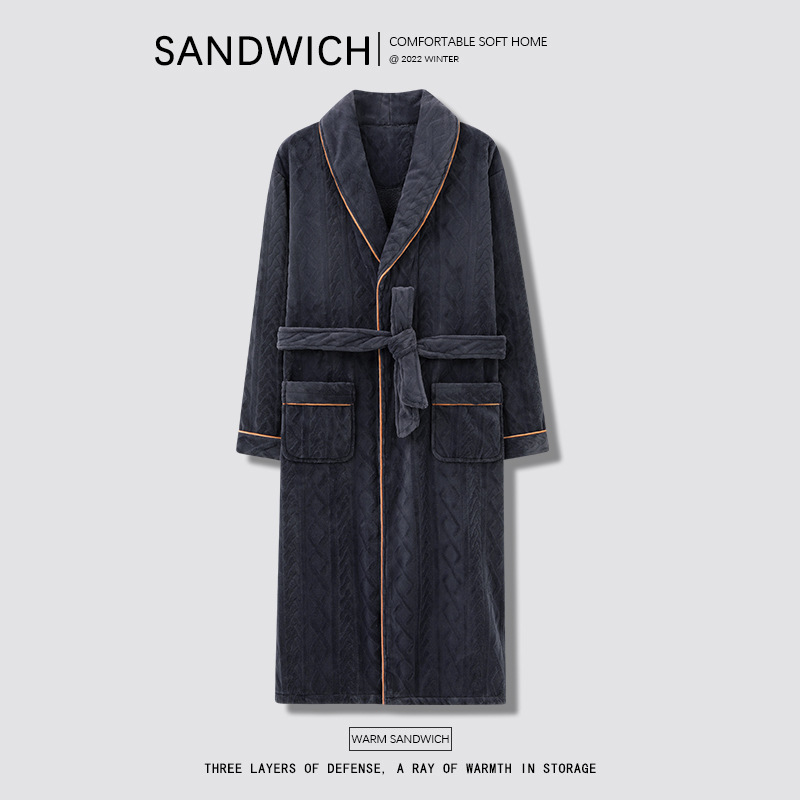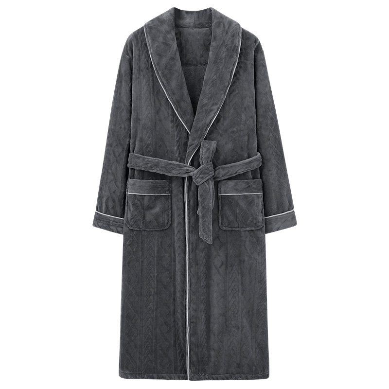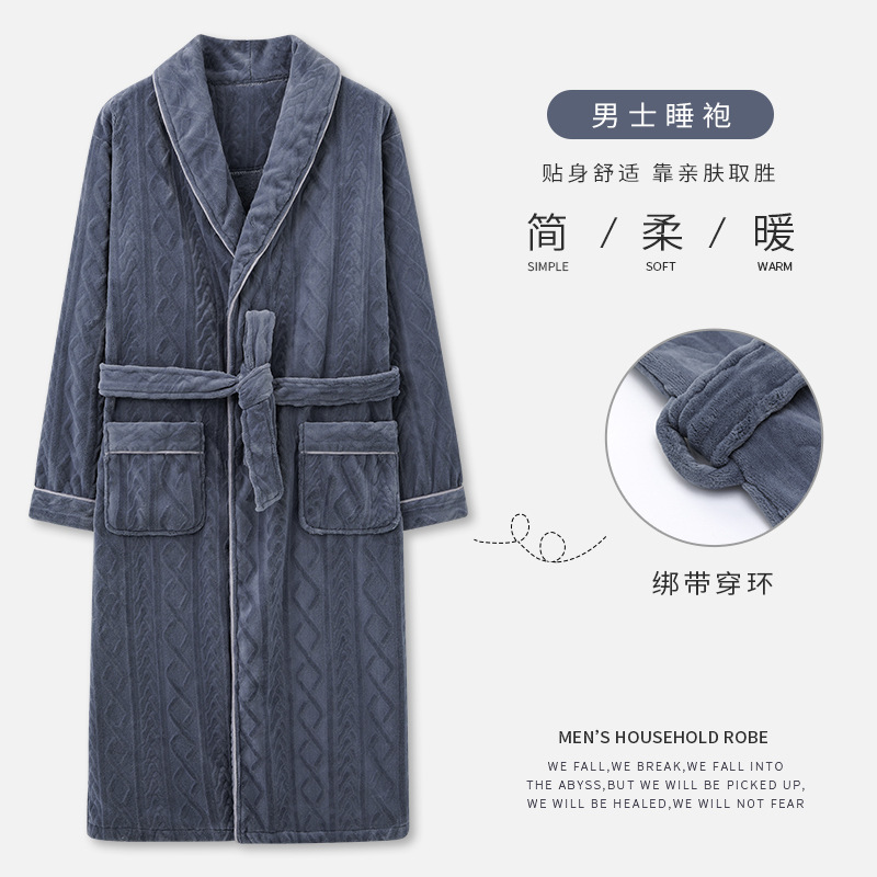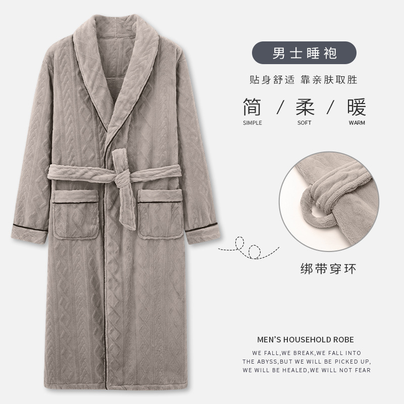 秋冬加厚睡袍男士珊瑚绒加肥大码加绒保暖冬天酒店晨袍家居服
