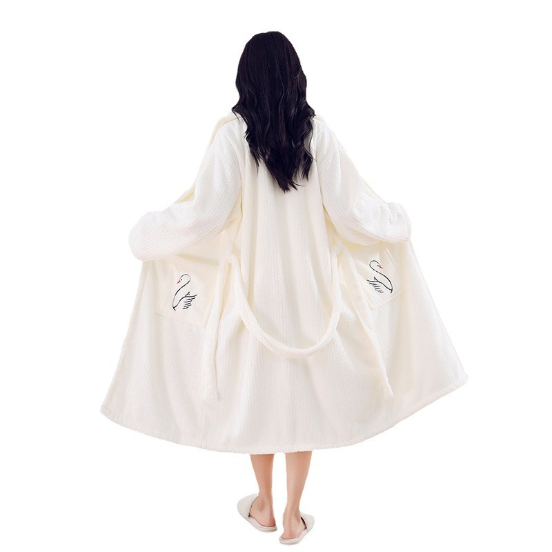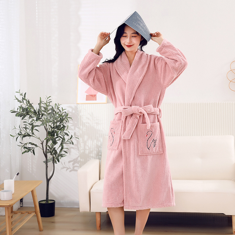 珊瑚绒浴袍男女家用浴衣吸水长袖洗澡可穿成人速干加厚浴袍