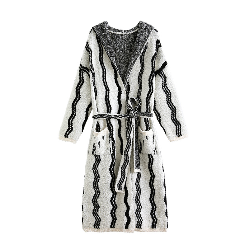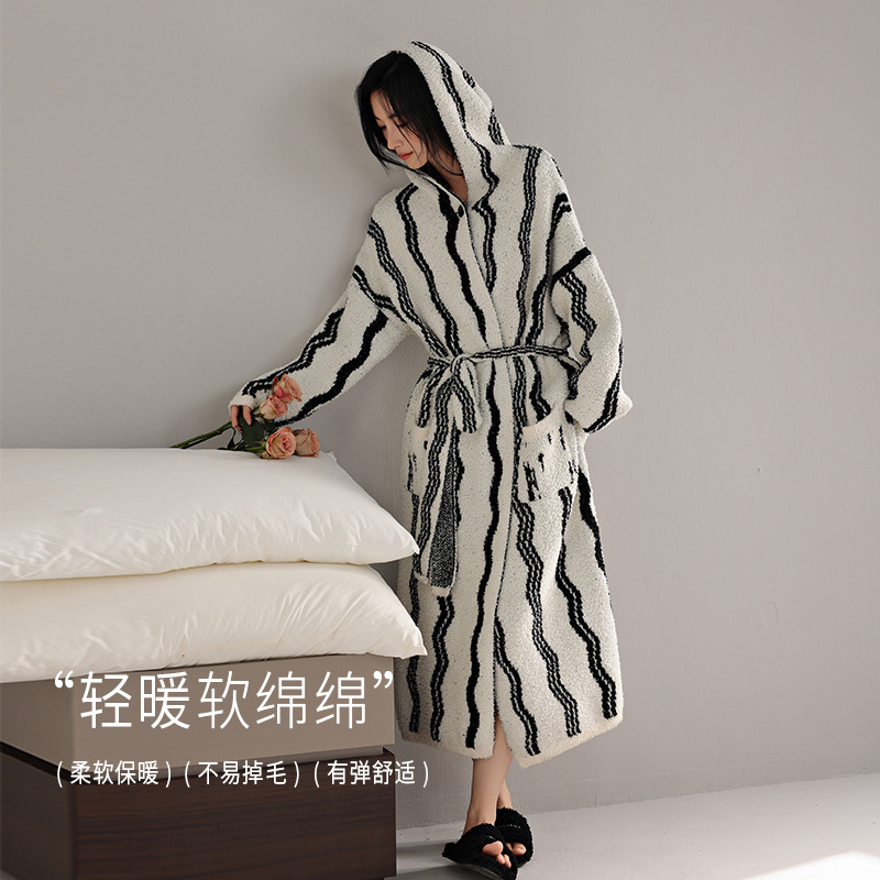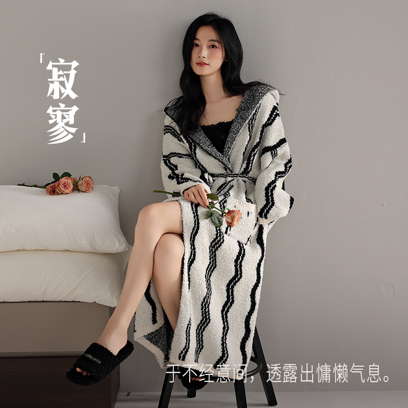 软绵绵半边绒睡衣秋冬女士睡袍长款加厚连帽家居服浴袍珊瑚绒