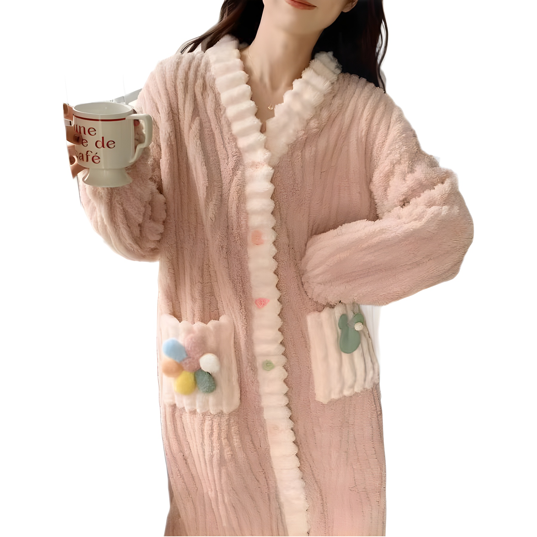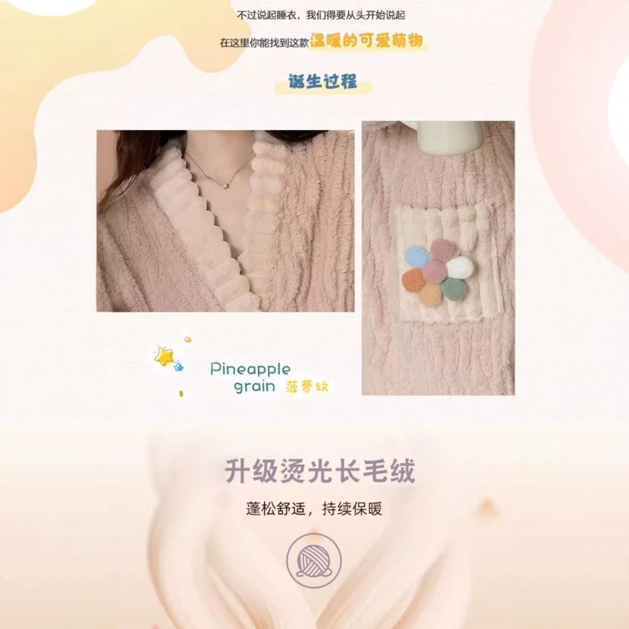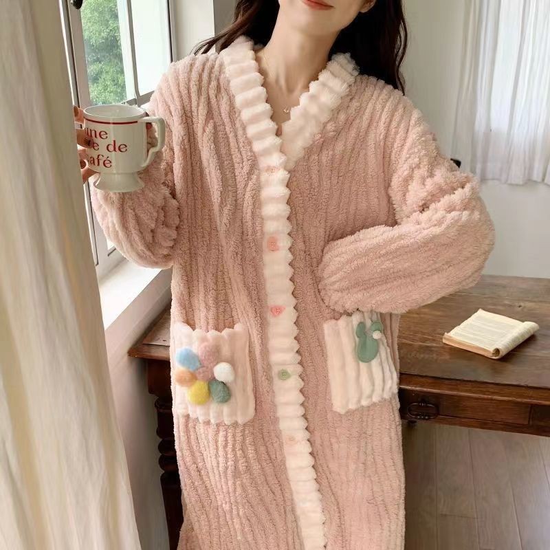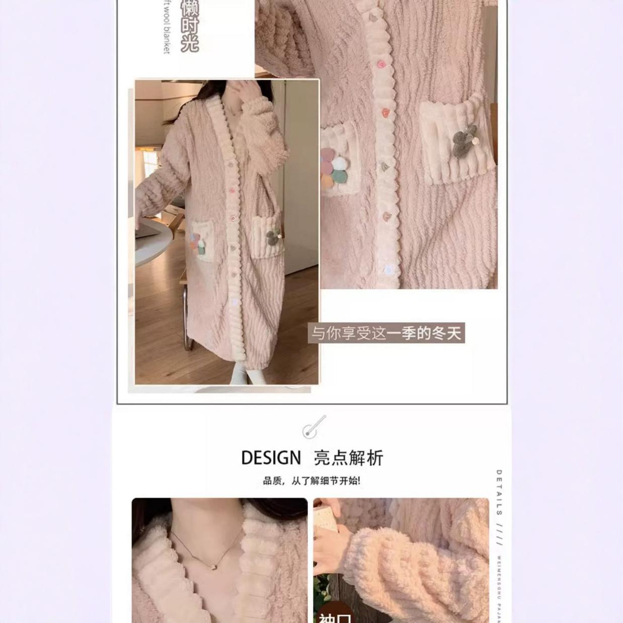 睡衣女秋冬季珊瑚绒提花长款睡袍加厚浴袍加绒睡裙家居服