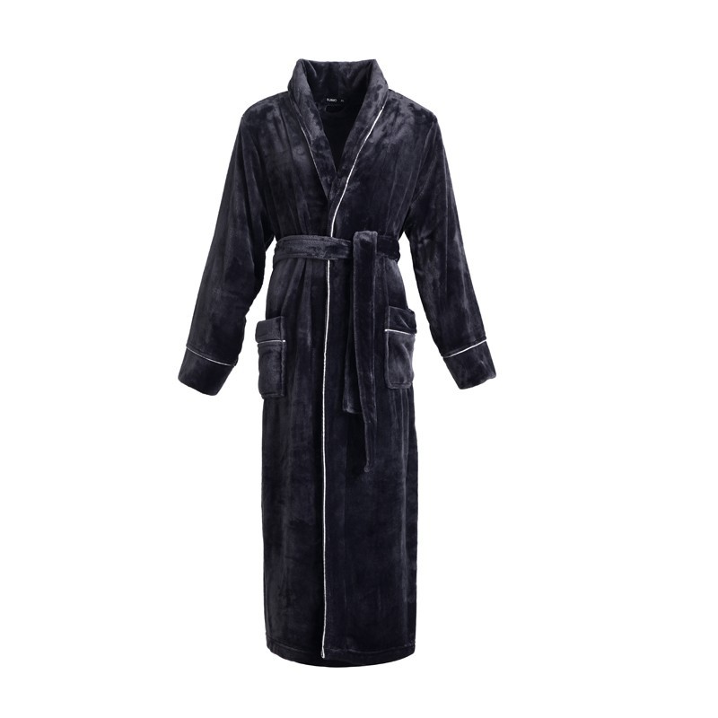 法兰绒睡袍男士简约大码珊瑚绒情侣浴袍女秋冬季长款