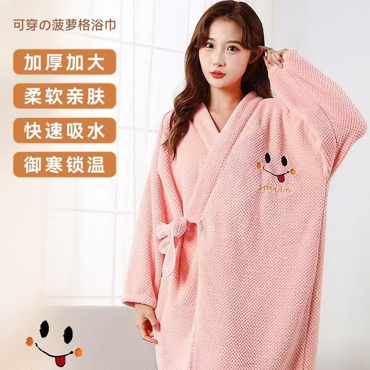 加厚浴袍女家用睡袍长款吸水速干可穿式浴巾柔软舒适成人浴裙