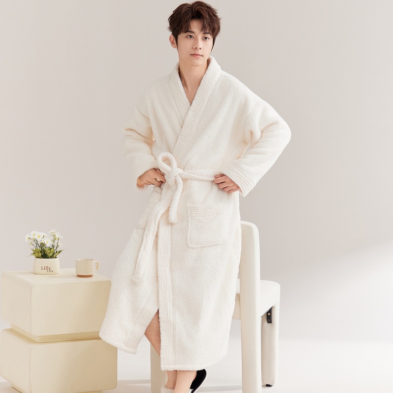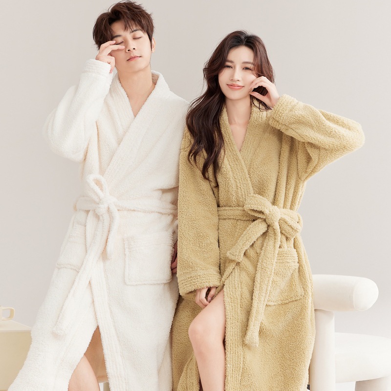 睡袍女秋冬季珊瑚绒男士浴袍情侣睡衣套装加长款浴衣加厚冬天