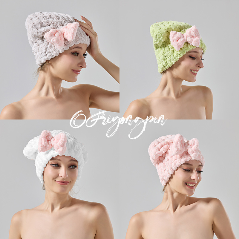 珊瑚绒云朵蝴蝶结干发帽女可爱高颜值超强吸水加厚包头巾公主帽