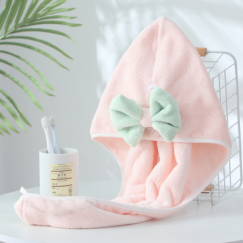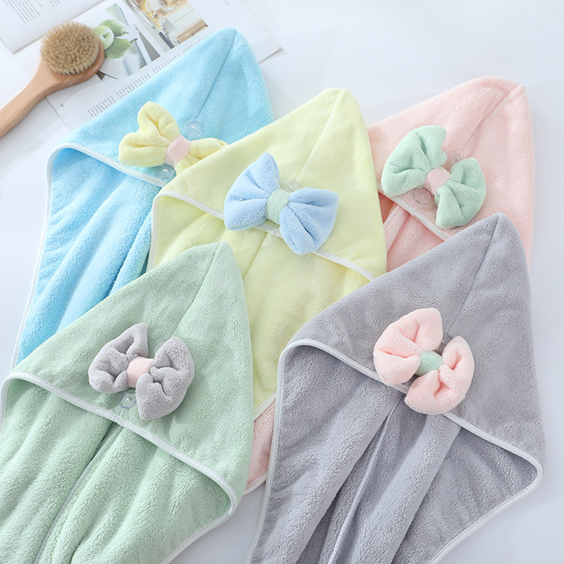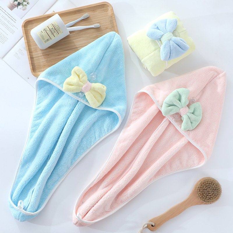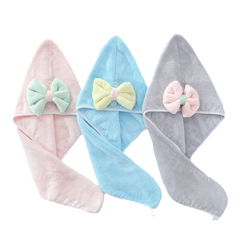 干发帽女大蝴蝶结浴帽加厚珊瑚绒速干吸水居家包头巾干发巾