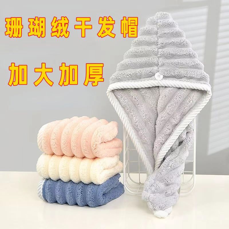 干发帽珊瑚绒横条糖果色干发帽强吸水速干