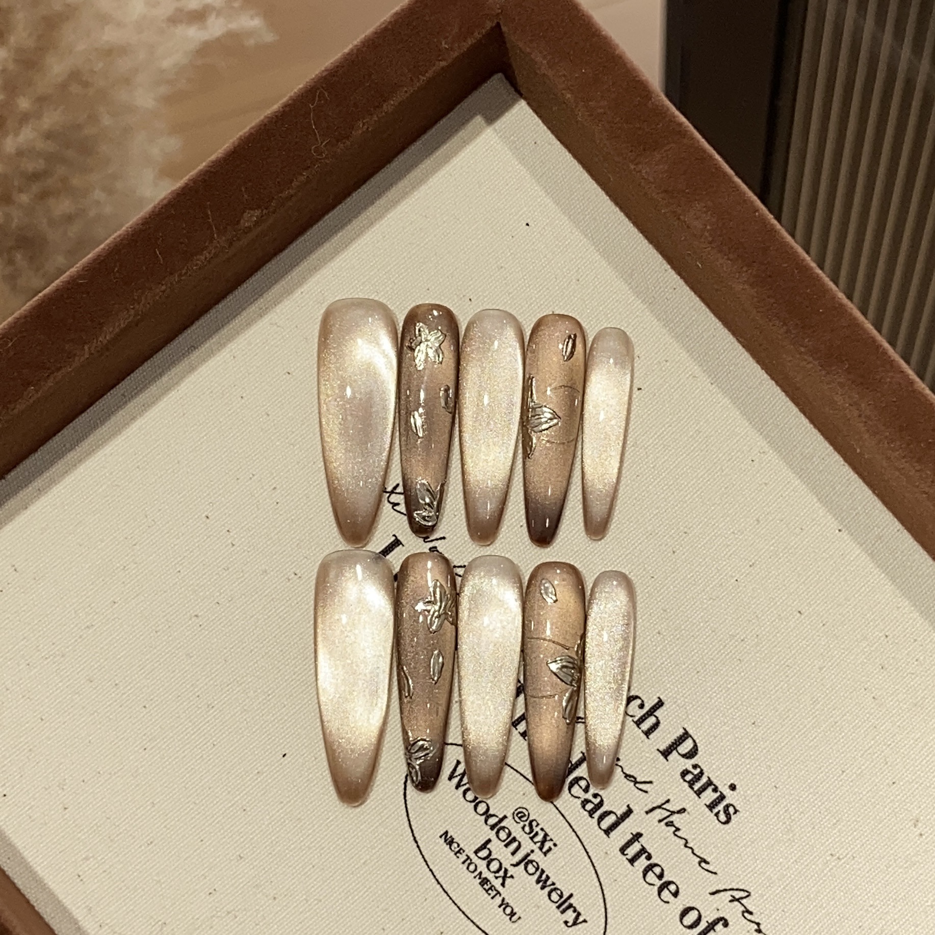 一只顾美甲 手工高级感气质猫眼手绘魔镜粉小花奢香可拆卸穿戴甲