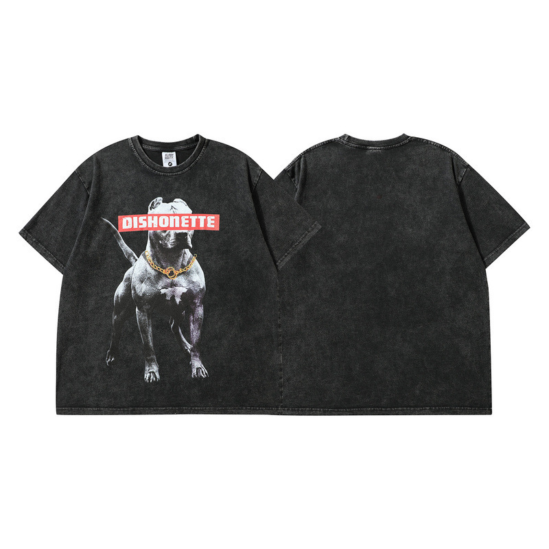 美式复古短袖t恤男宽松潮牌夏季印花ins潮流水洗半袖体恤外贸