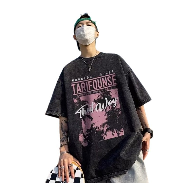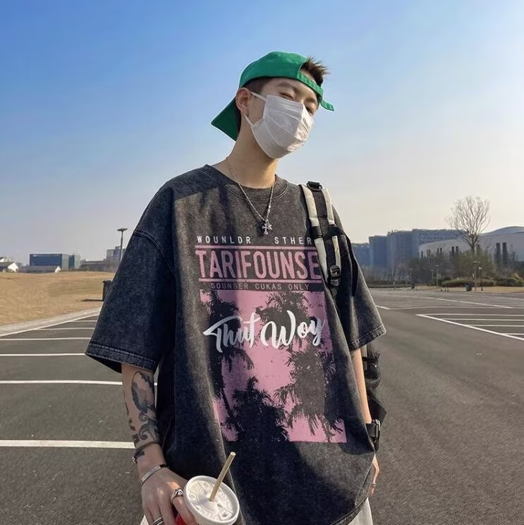 男生短袖ins潮牌t恤美式上衣夏季宽松半袖男士体恤港风青少年