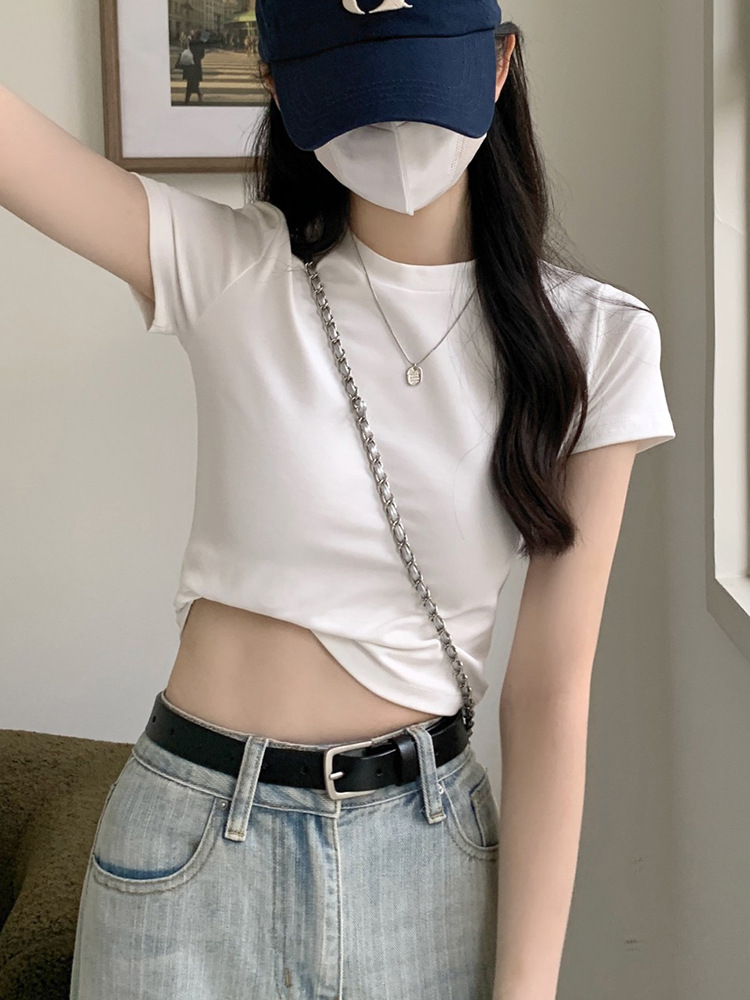 美式复古纯棉短袖t恤女夏季设计感小众chic港味女装打底衫上衣潮