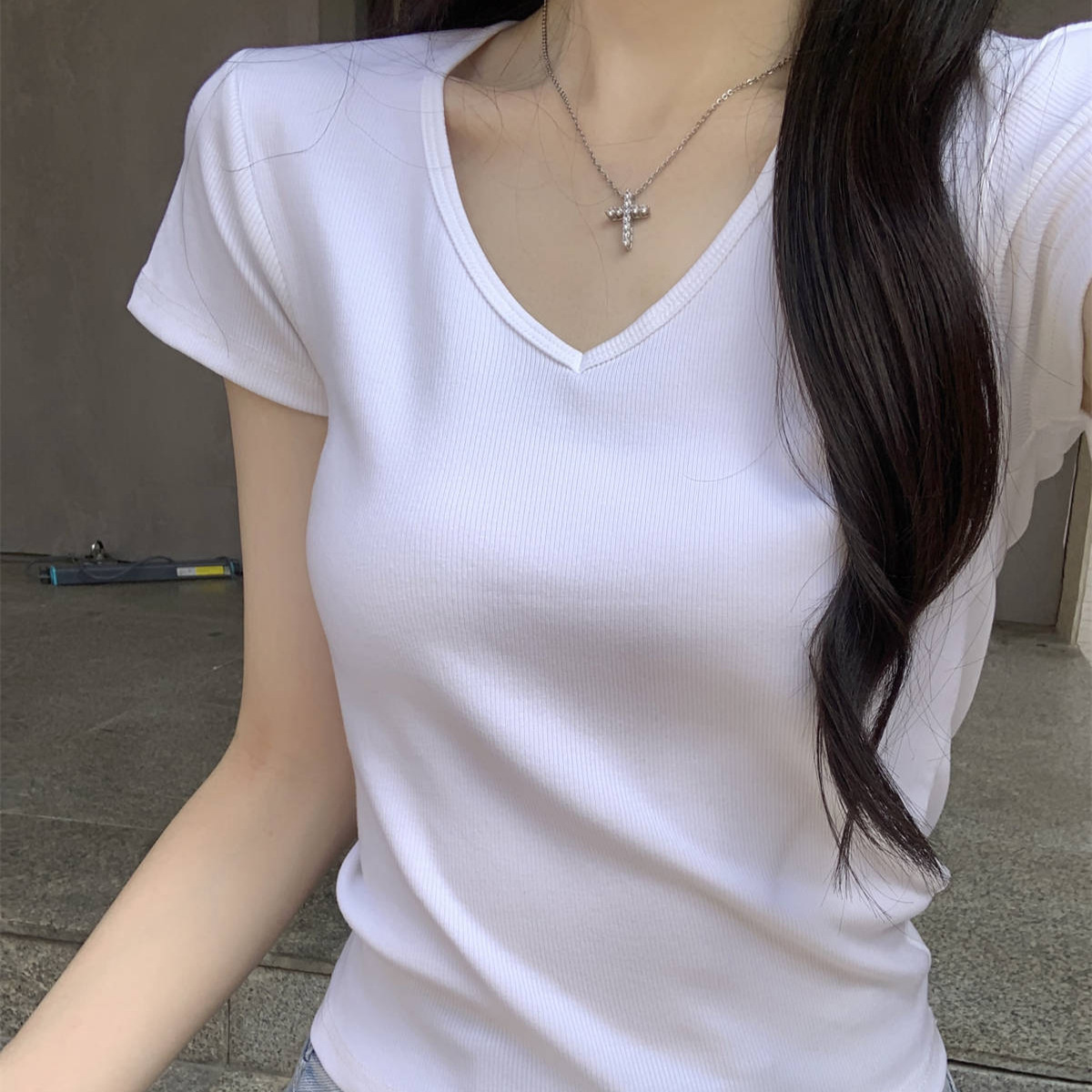 韩系时尚修身短袖t恤女新款夏季设计感小众辣妹短款显瘦上衣