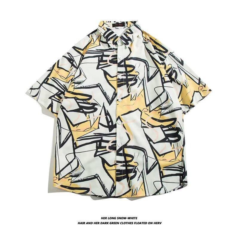 短袖花衬衫夏季新款冰凉透气男情侣款休闲舒适宽松小众外套