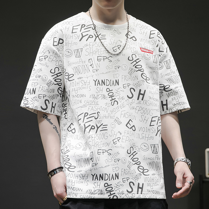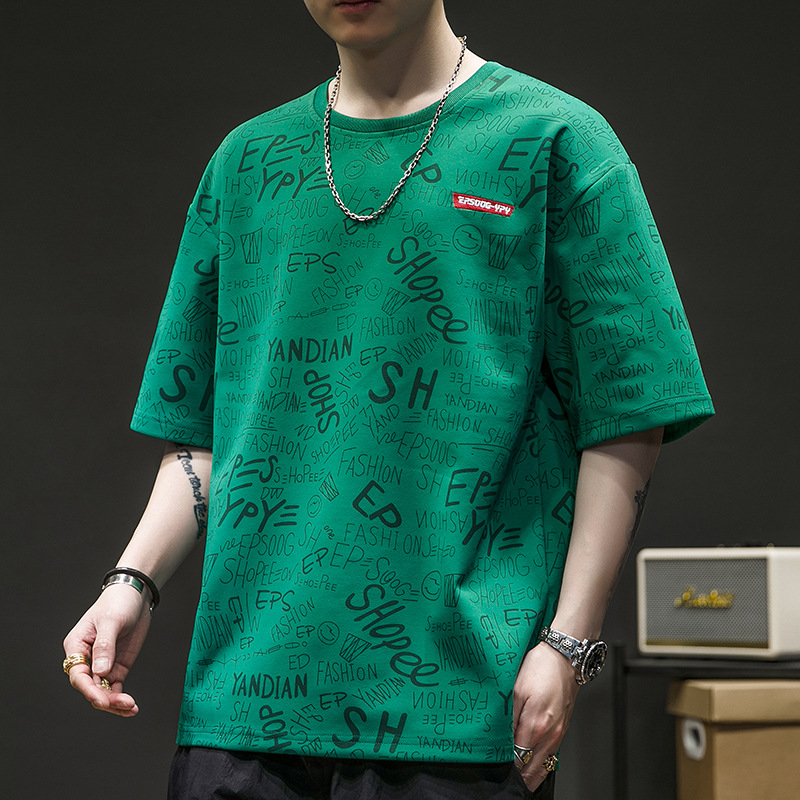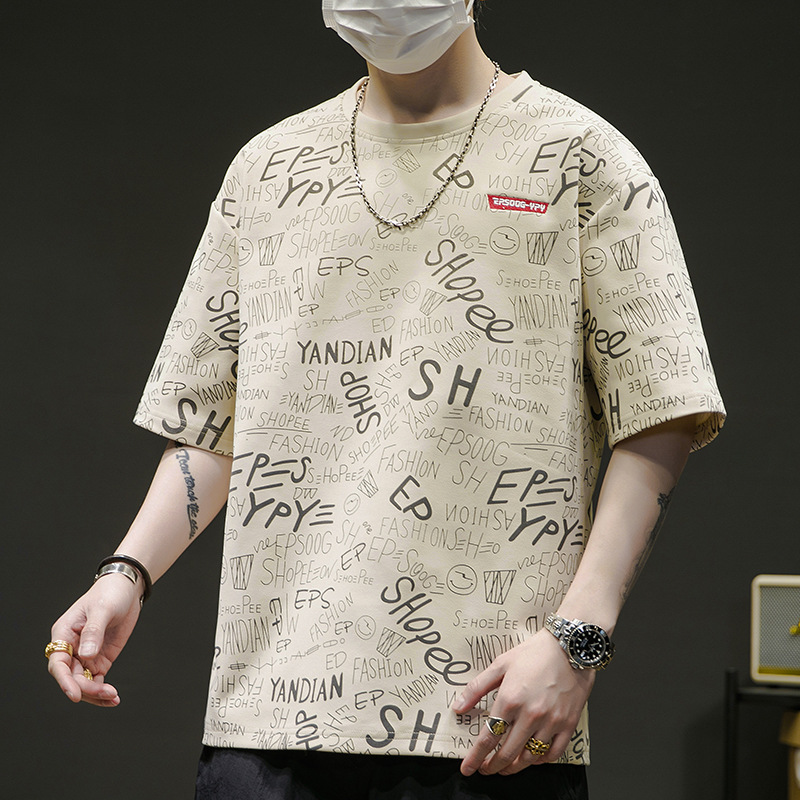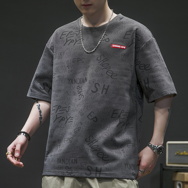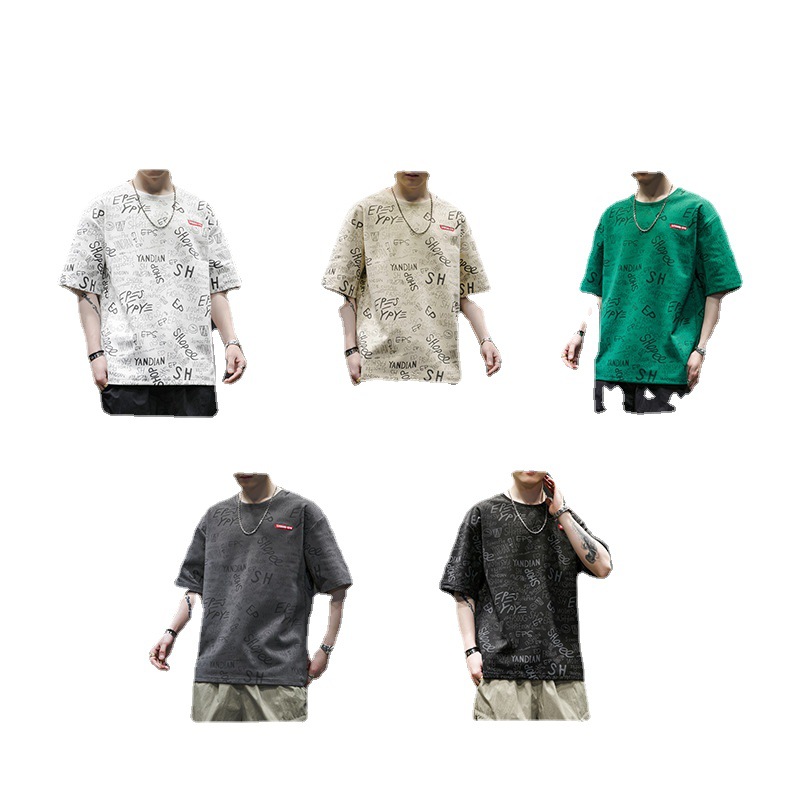 新款短袖T恤男夏季韩版潮流简约半袖上衣港风宽松休闲潮牌体恤衫