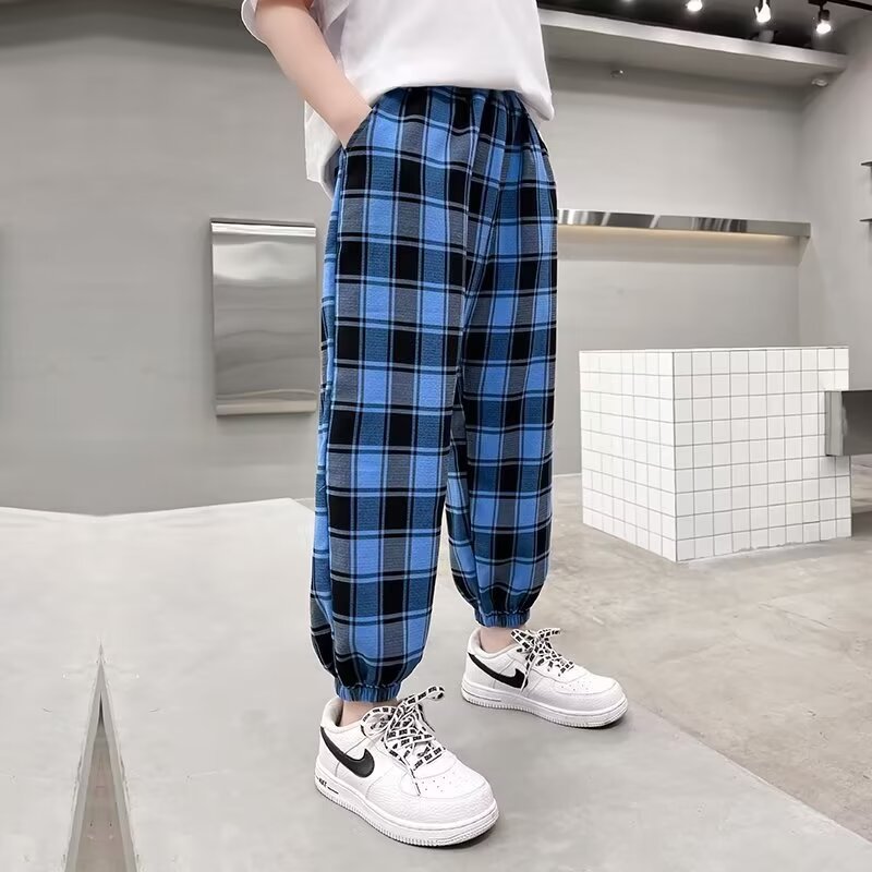 男童格子冰丝裤夏季薄款中大童男孩洋气休闲宽松防蚊裤时尚束脚裤