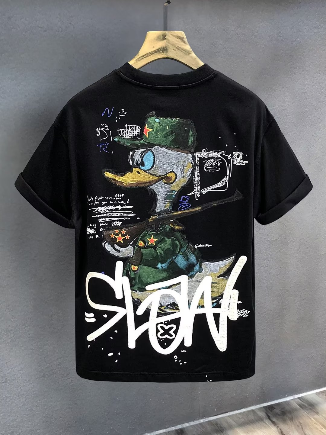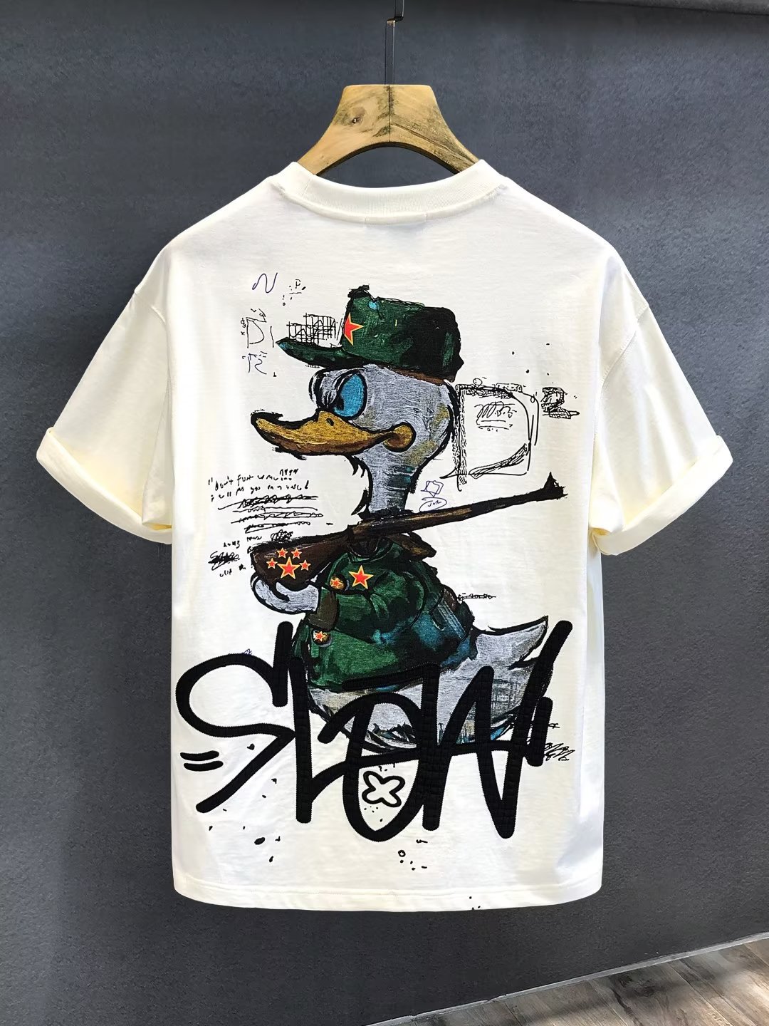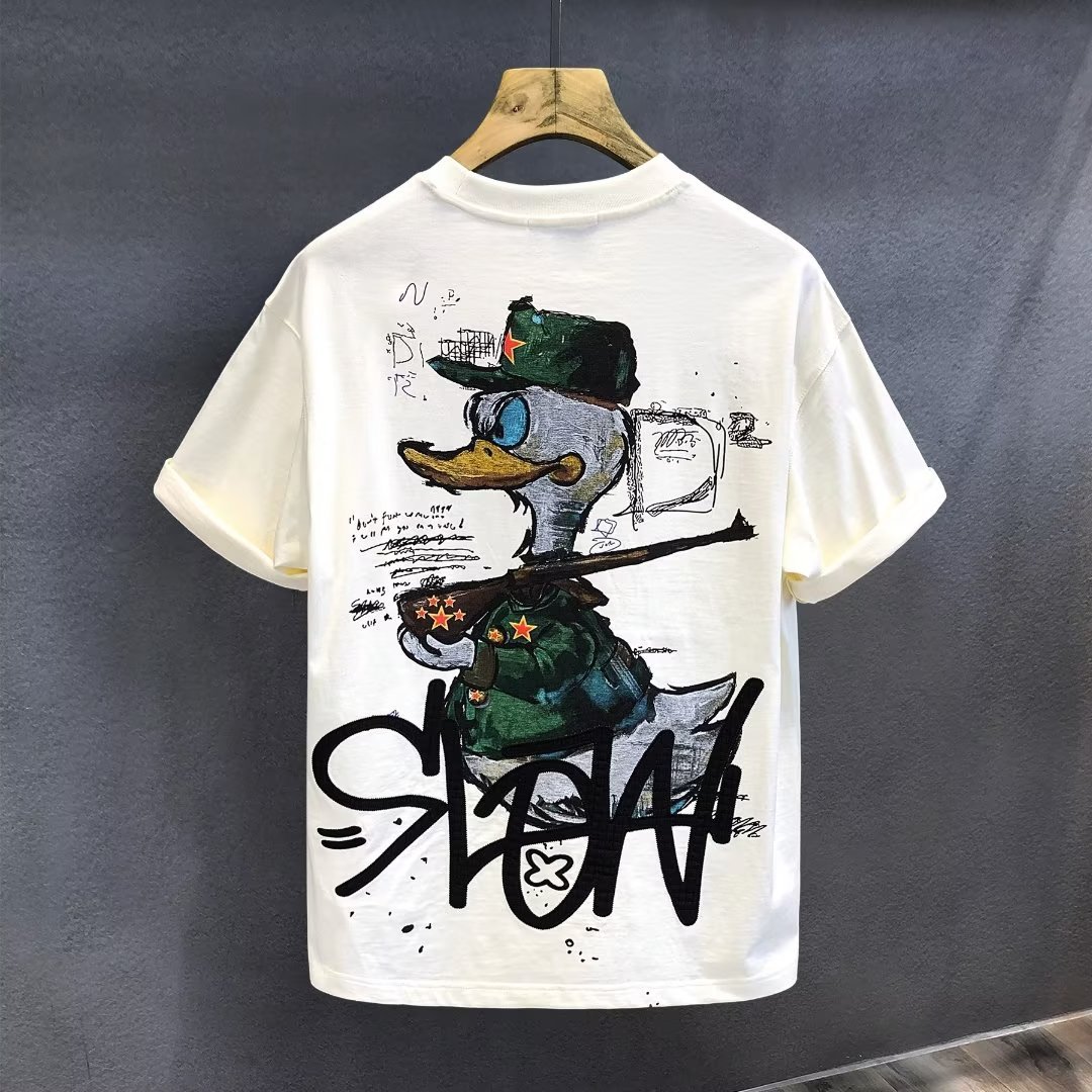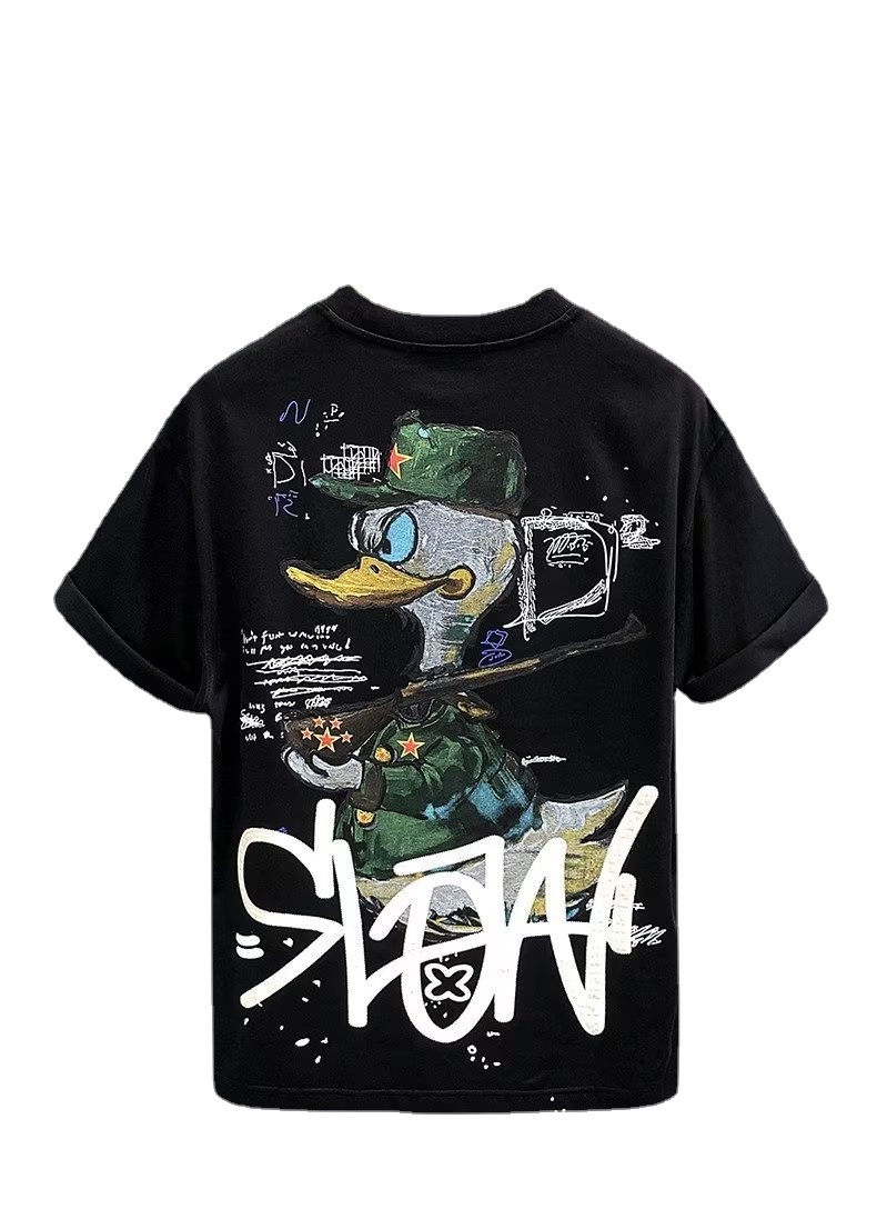 美式卡通涂鸦印花短袖T恤男夏季潮牌ins男装休闲宽松半袖情侣体恤