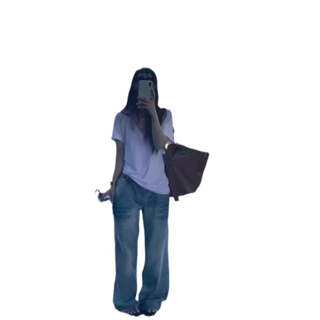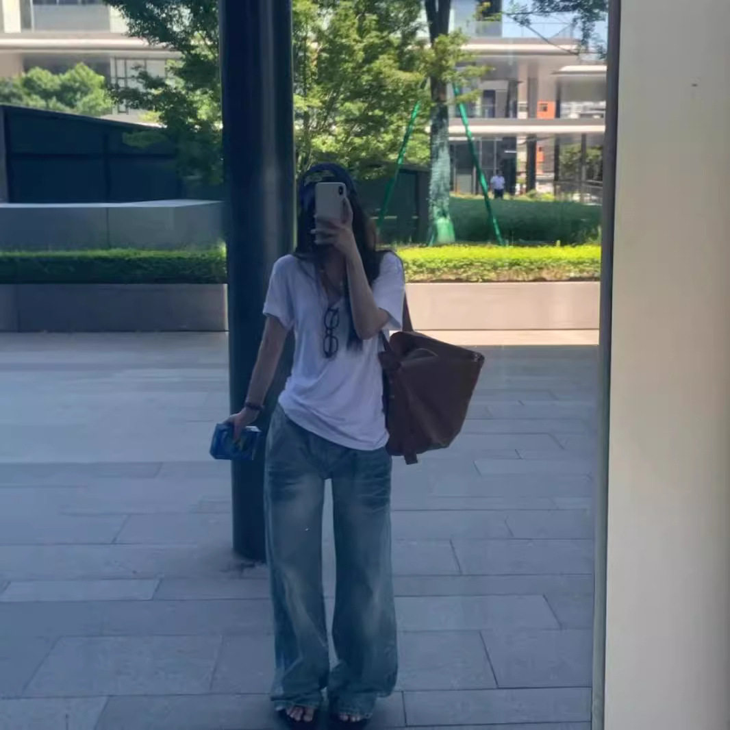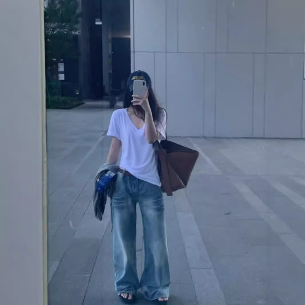 高级感藏青色休闲高腰阔腿裤女新款慵懒风复古宽松显瘦直筒裤