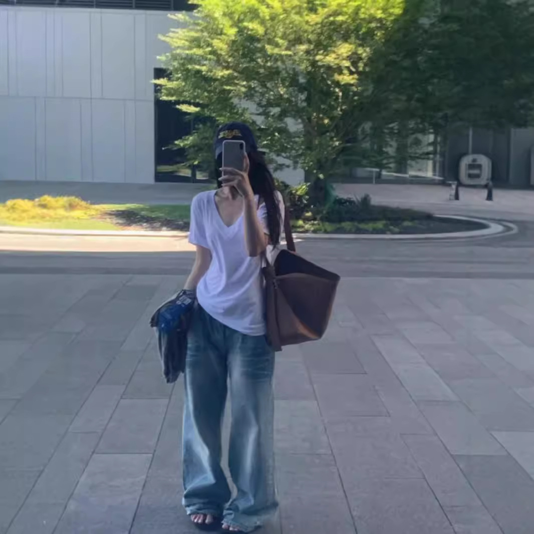 夏季爆款简约百搭纯色宽松显瘦正肩纯棉短袖女气质通勤上衣