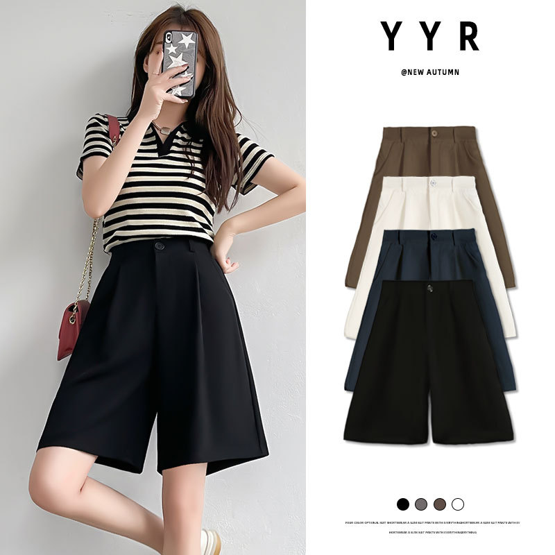 黑色西装短裤女夏季薄款宽松高腰a字显瘦阔腿休闲小个子五分中裤