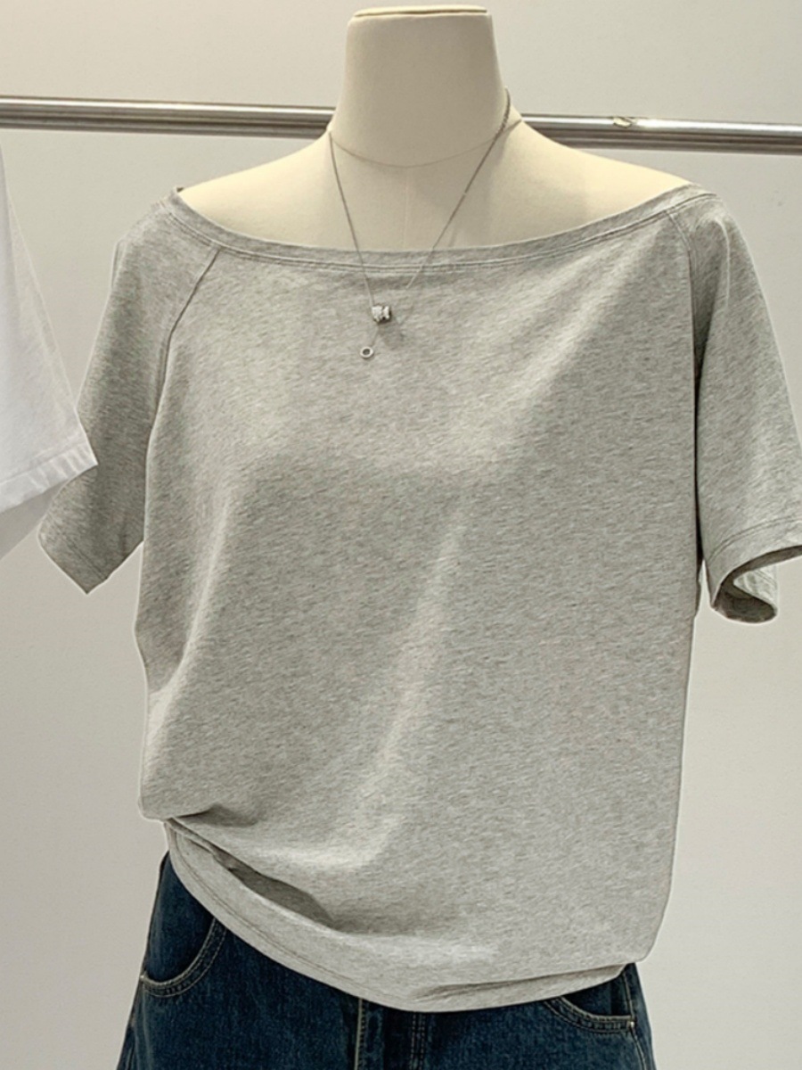性感一字领露肩短袖T恤夏季新款韩版宽松显瘦小众斜肩上衣女