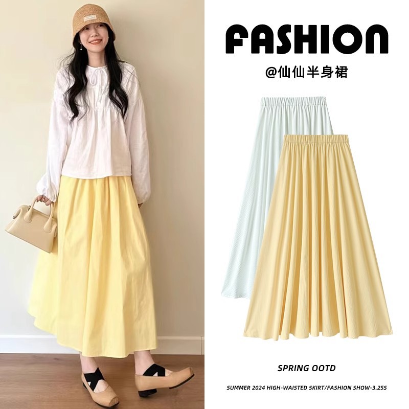 黄色半身裙女春秋2025年新款高腰休闲中长款显瘦温柔小个子长裙子