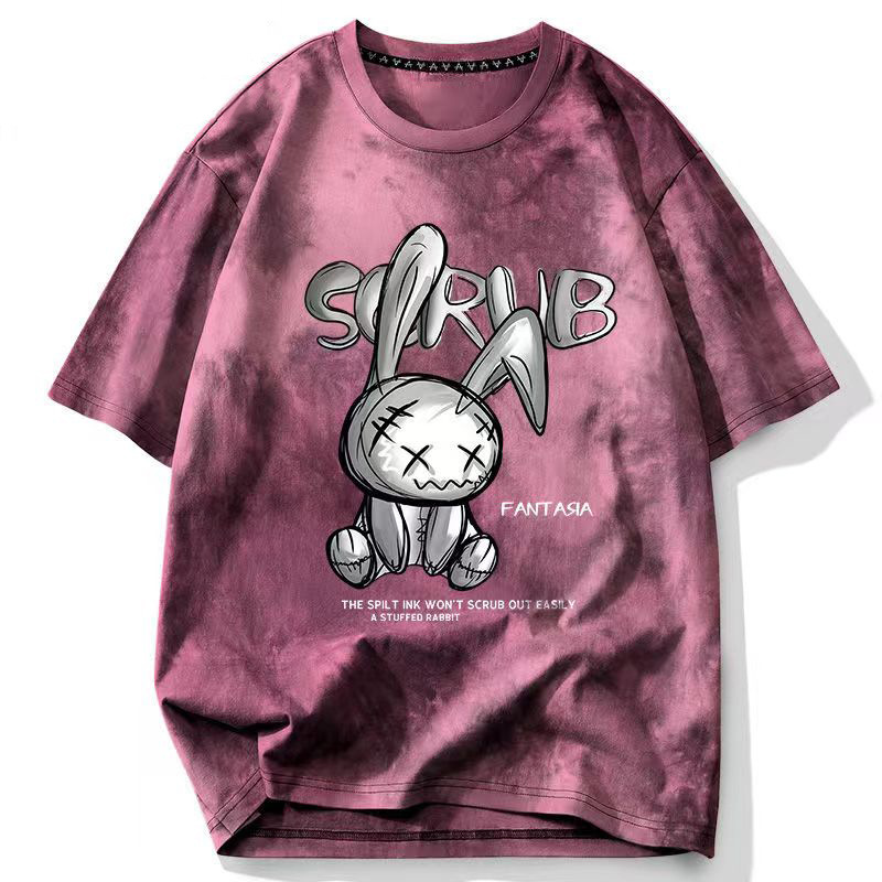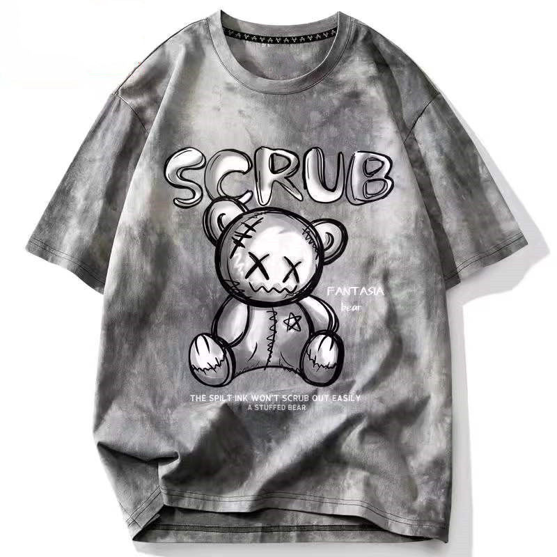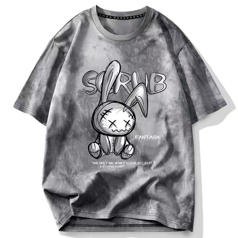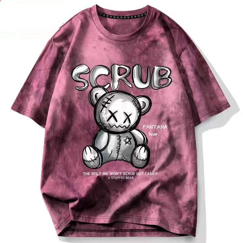 夏季潮ins男装港风扎染大码t恤男复古潮流个性宽松显瘦短袖体恤男