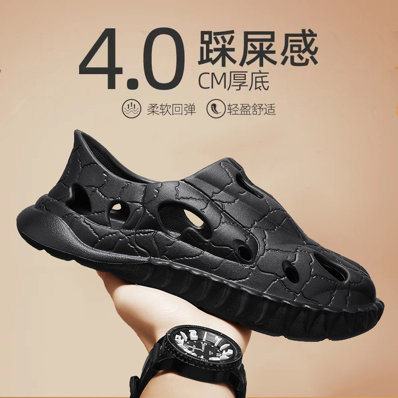踩屎感沙滩鞋男款夏潮流椰子洞洞鞋休闲运动男士凉鞋外穿软底凉拖