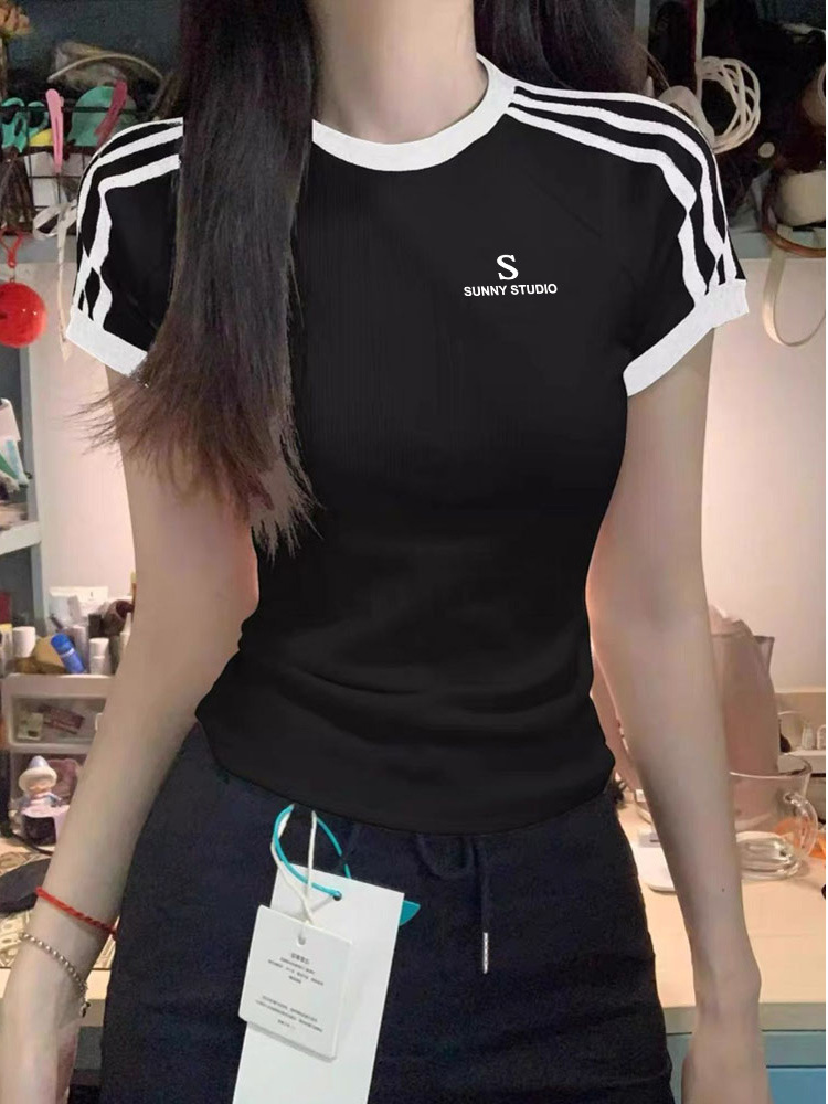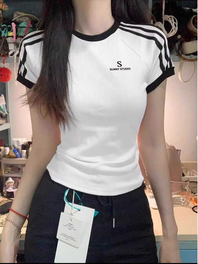 潮牌字母印花短袖针织T恤女夏季新款百搭显瘦别致短款上衣ins