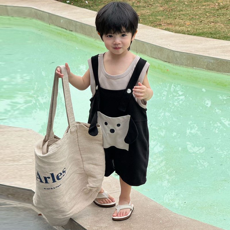 50011-1夏季新品3-8岁童裤男女童特种横条背带裤宝宝韩版宽腿中裤