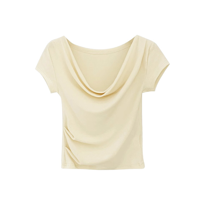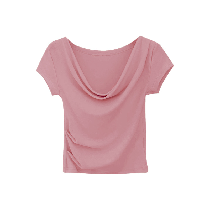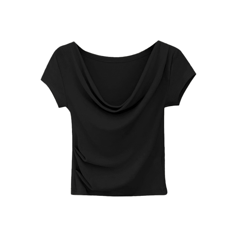 法式荡领漏锁骨一字肩修身显瘦短袖T恤女夏季辣妹风短款上衣