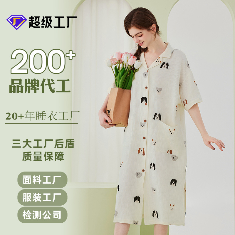 东帝纯棉双层纱睡裙女夏季长款可爱女士睡衣裙可外穿家居服女