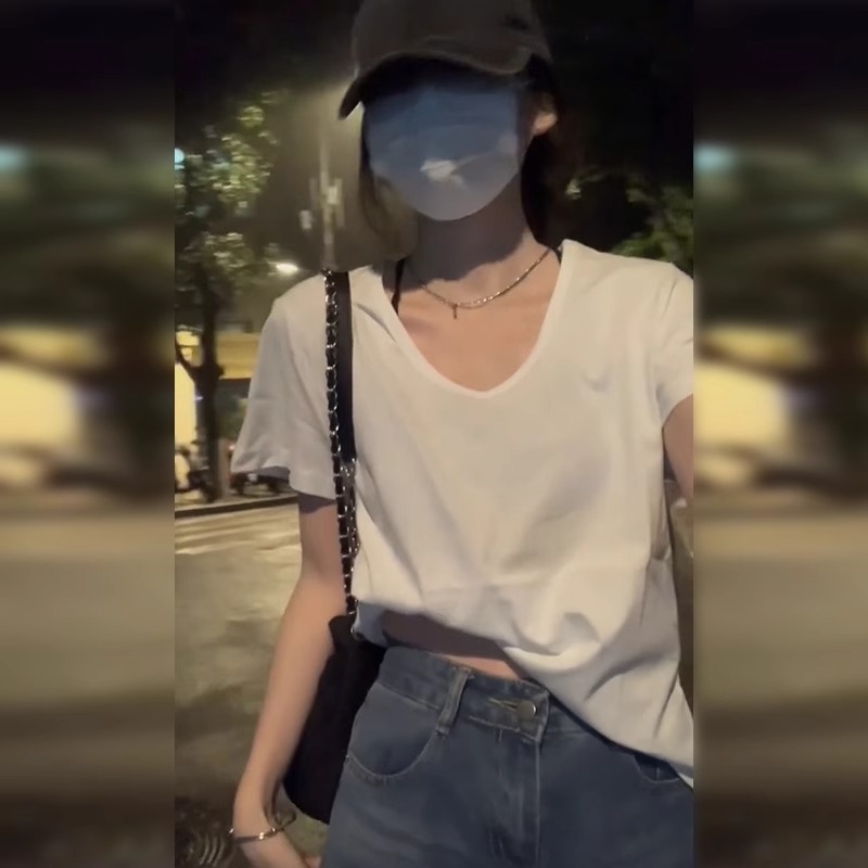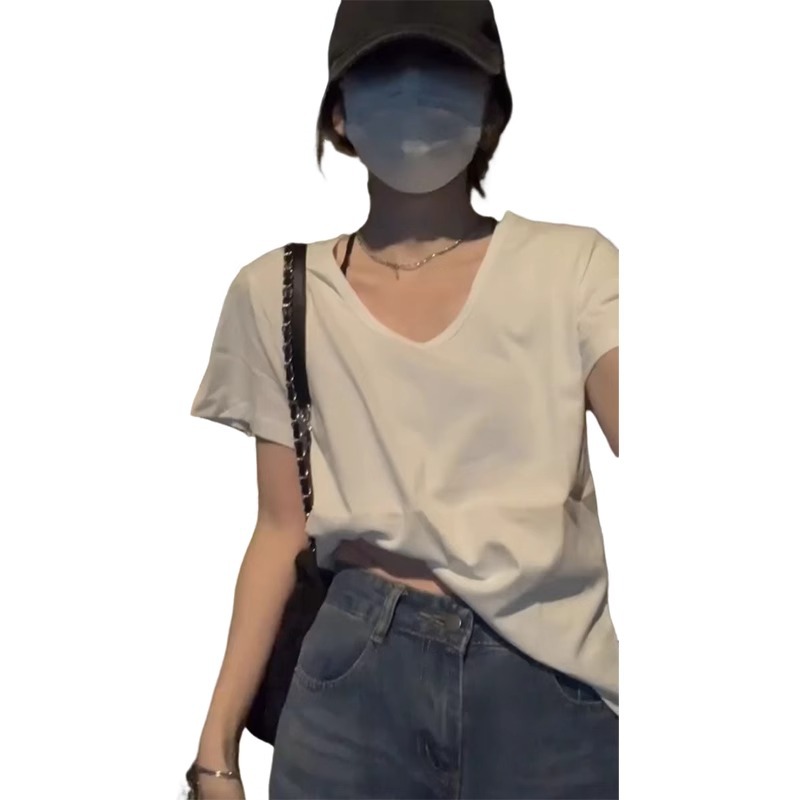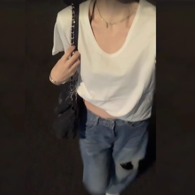 慵懒风U领漏锁骨白T恤女夏季宽松休闲显瘦上衣时尚松弛感短袖