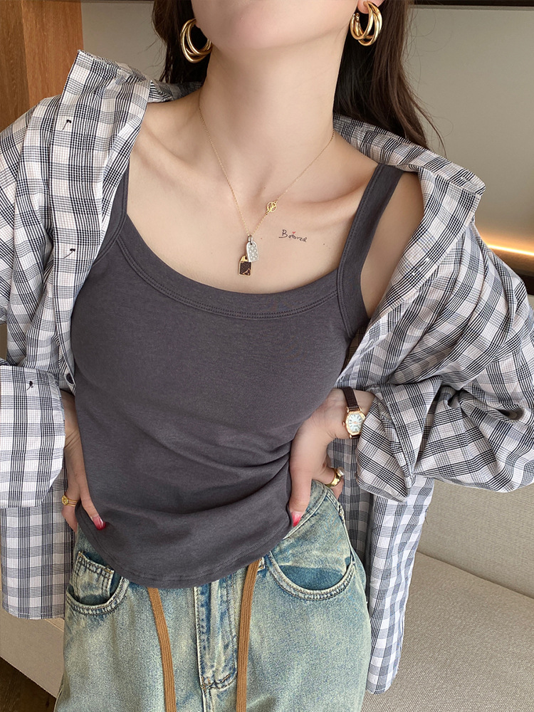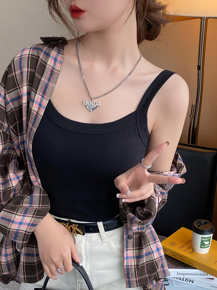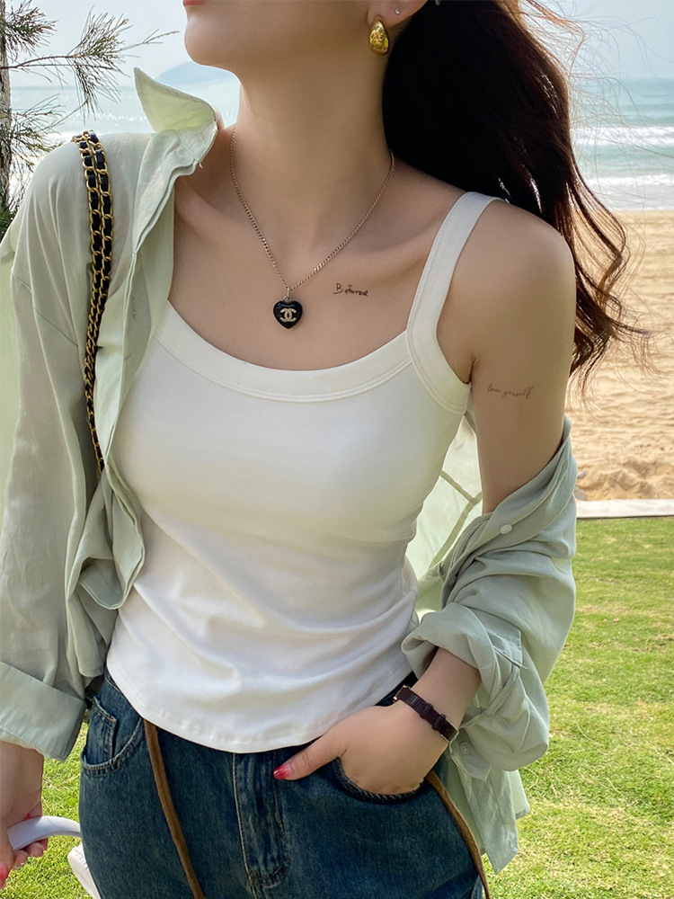 跨境纯棉吊带夏季内搭打底上衣外穿白色美背自带胸垫内衣文胸一体