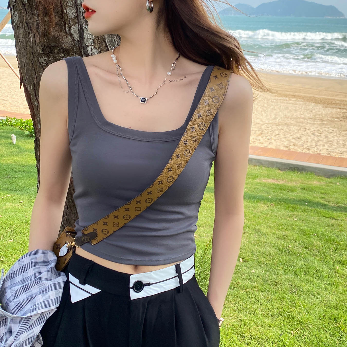 咖啡色~吊带背心款