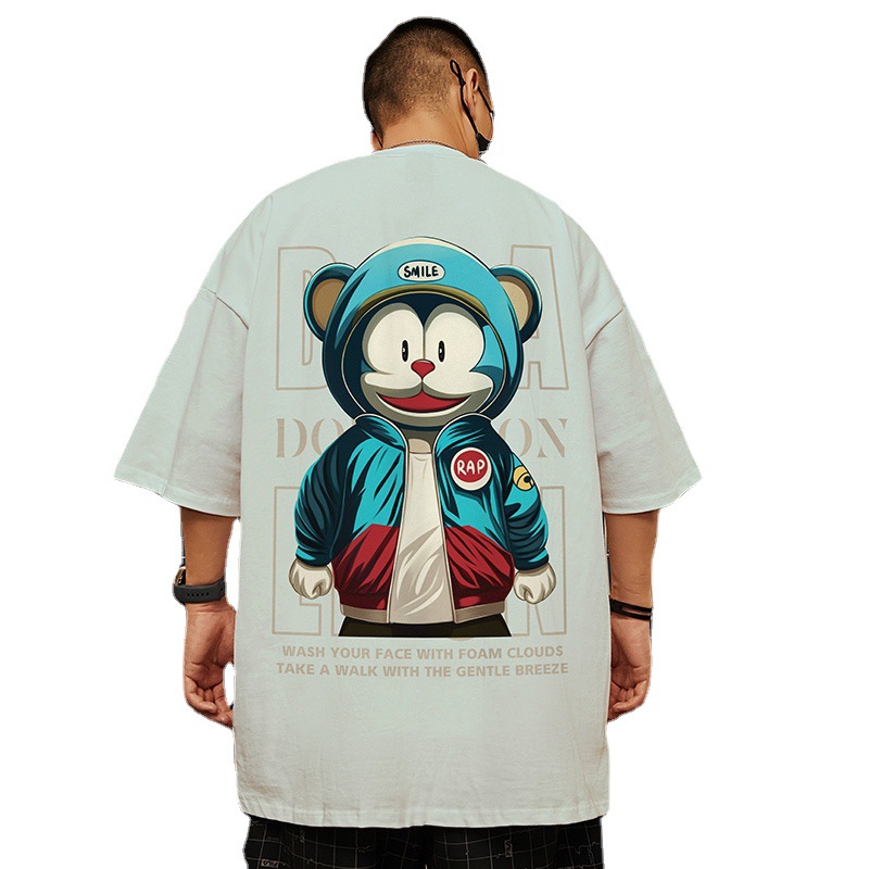 港风潮牌胖子男装大码国潮宽松日系卡通短袖T恤大码300斤半袖