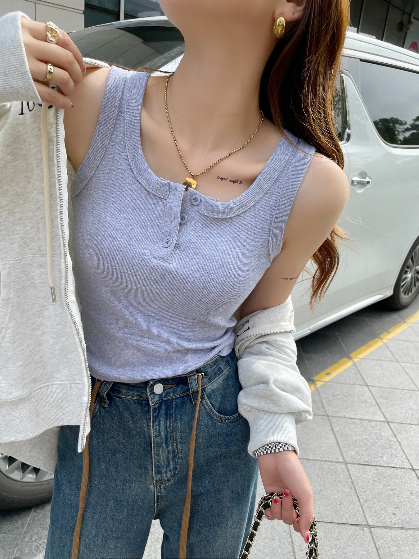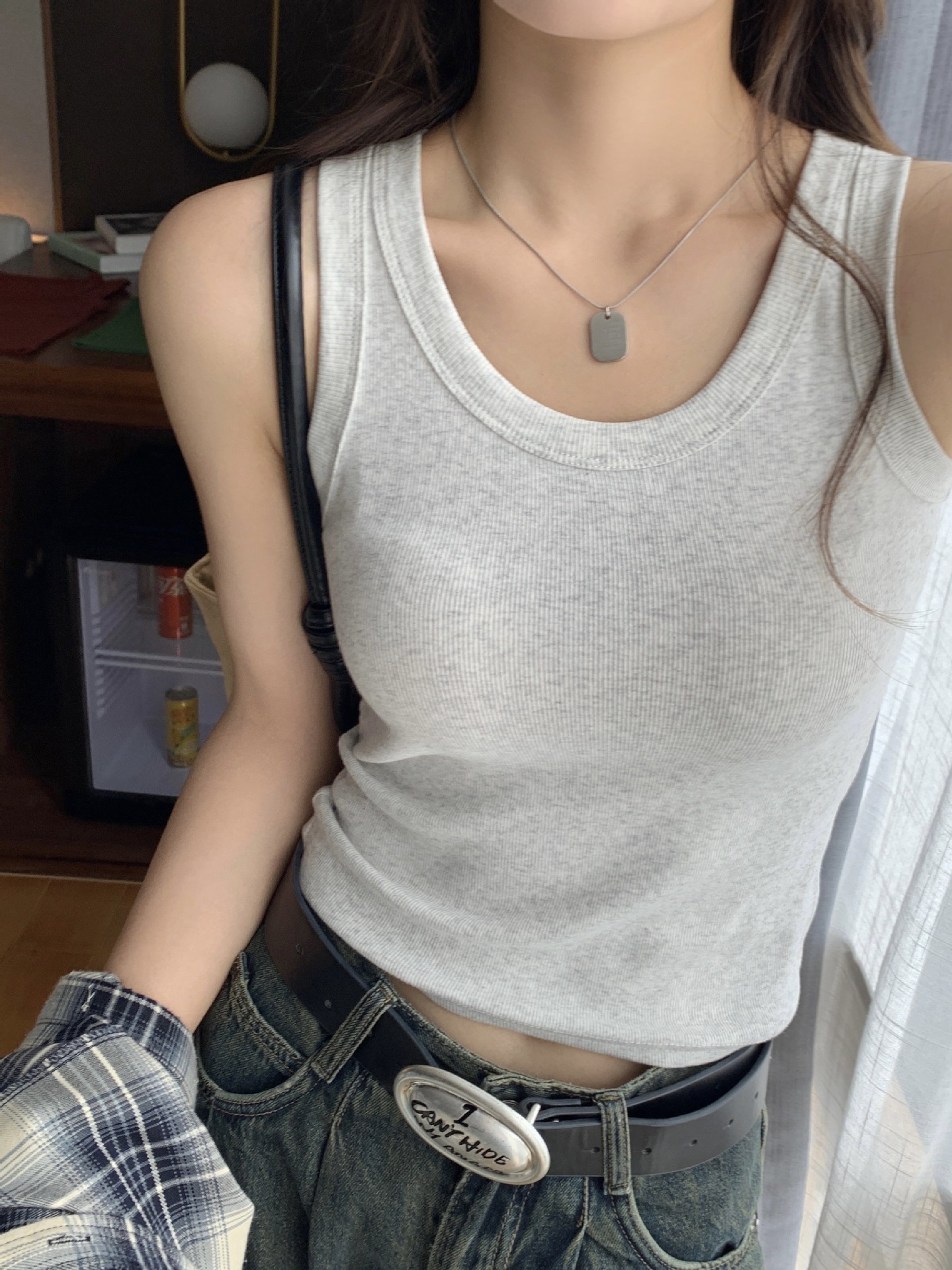 - 浅灰色~一体式胸垫款【港味chic/时尚/时髦】