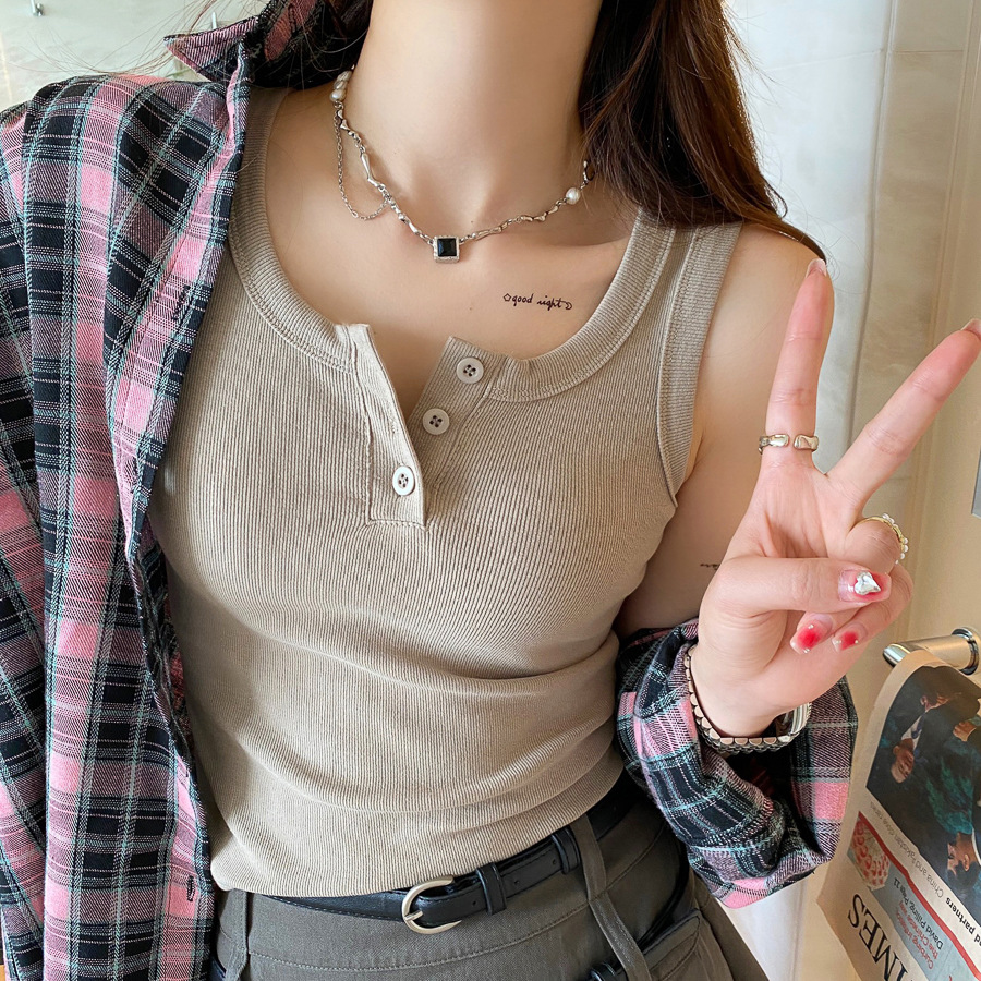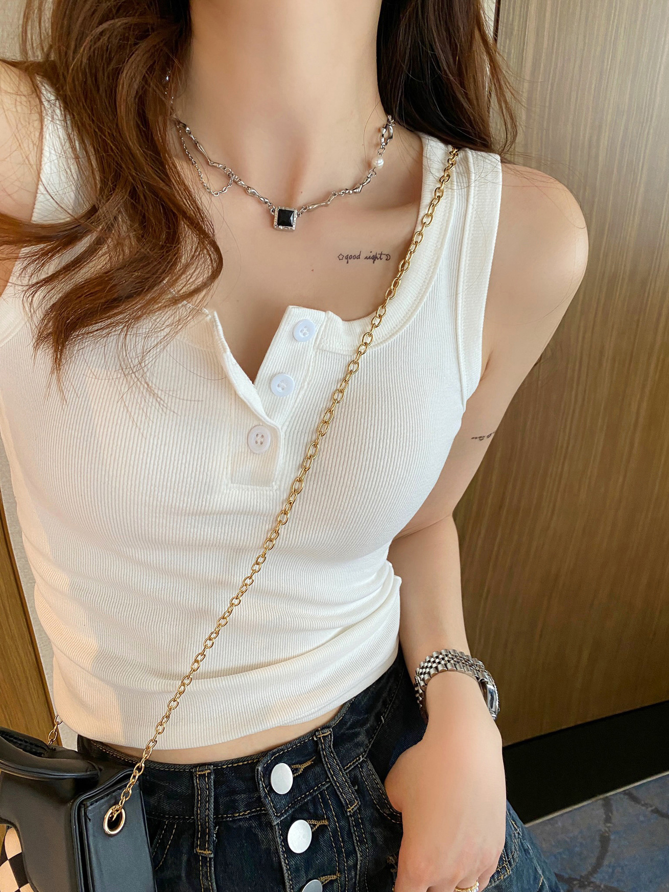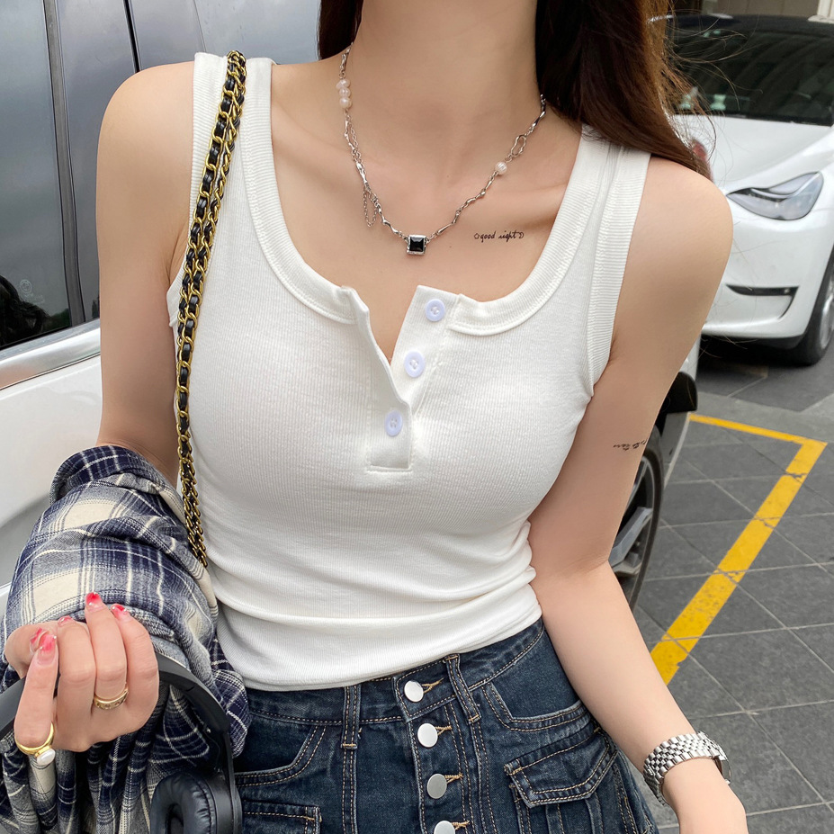- 白色~纽扣款【显瘦/黑色/白色/遮副乳】