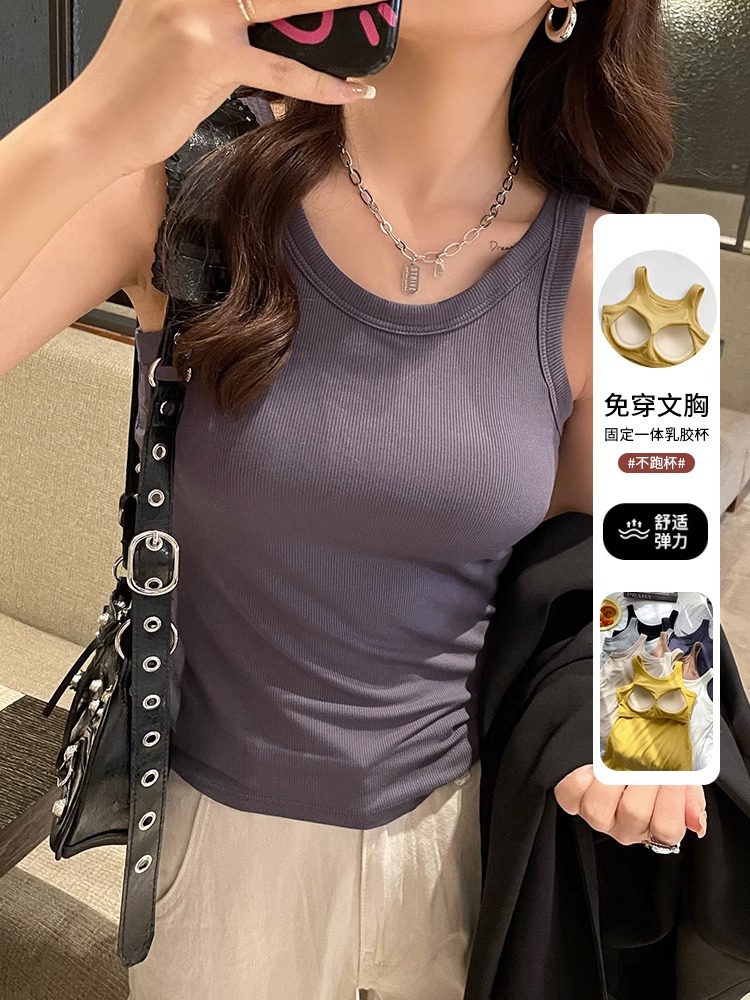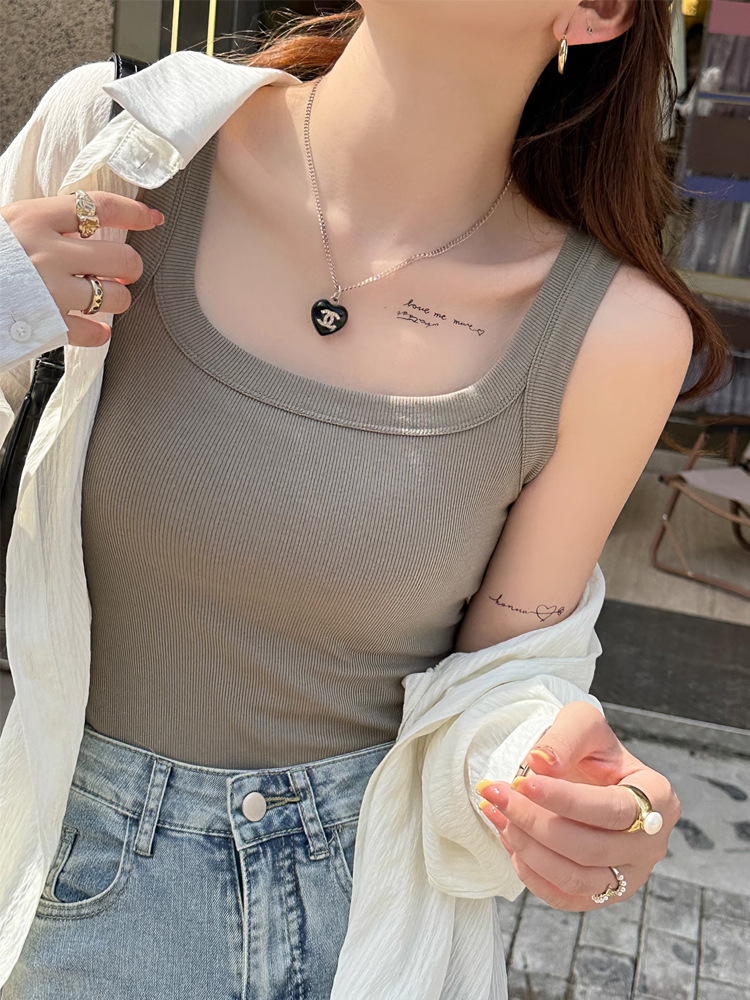 螺纹棉吊带背心女宽肩带夏季内搭遮副乳打底外穿修身显瘦无袖上衣