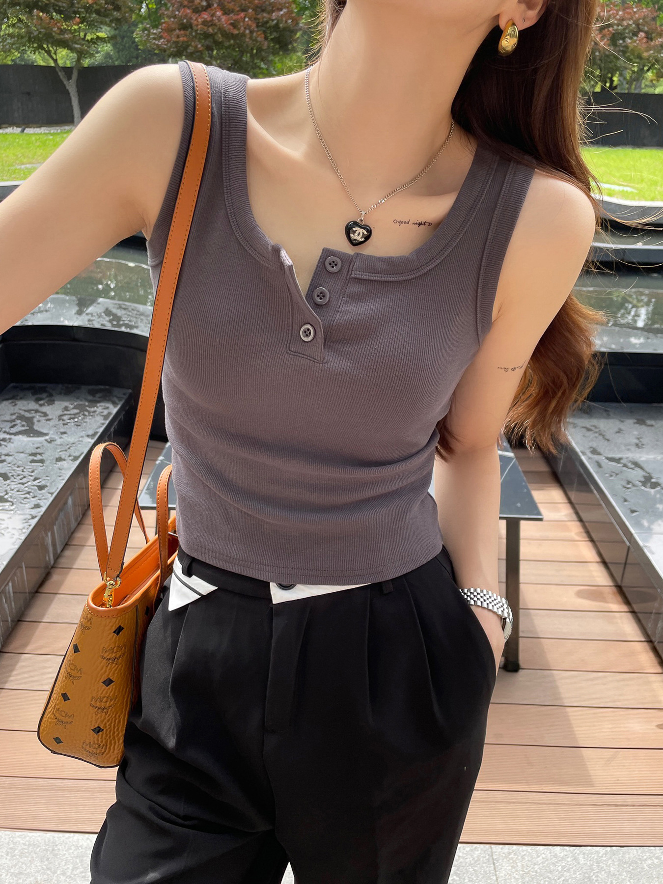 - 花灰色~纽扣款【显瘦/黑色/白色/遮副乳】