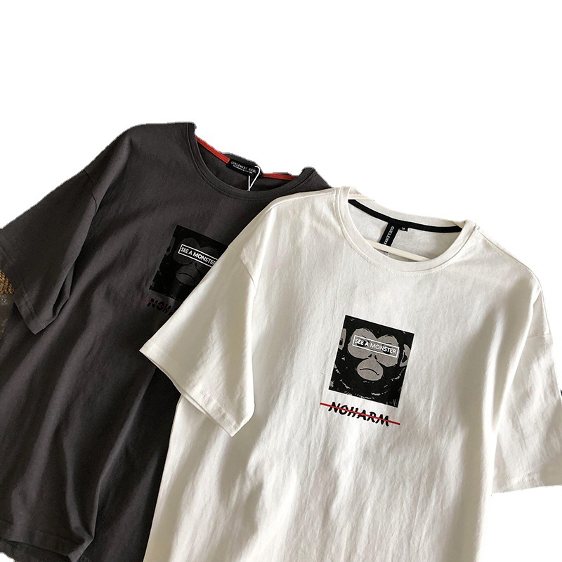 潮牌夏季短袖t恤男装韩版潮流ins五分袖港风日系上衣服宽松半截袖