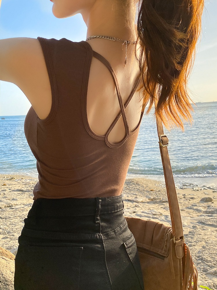 咖啡色~后背交叉款