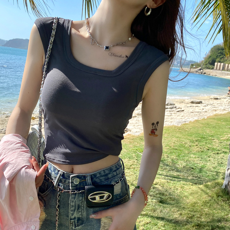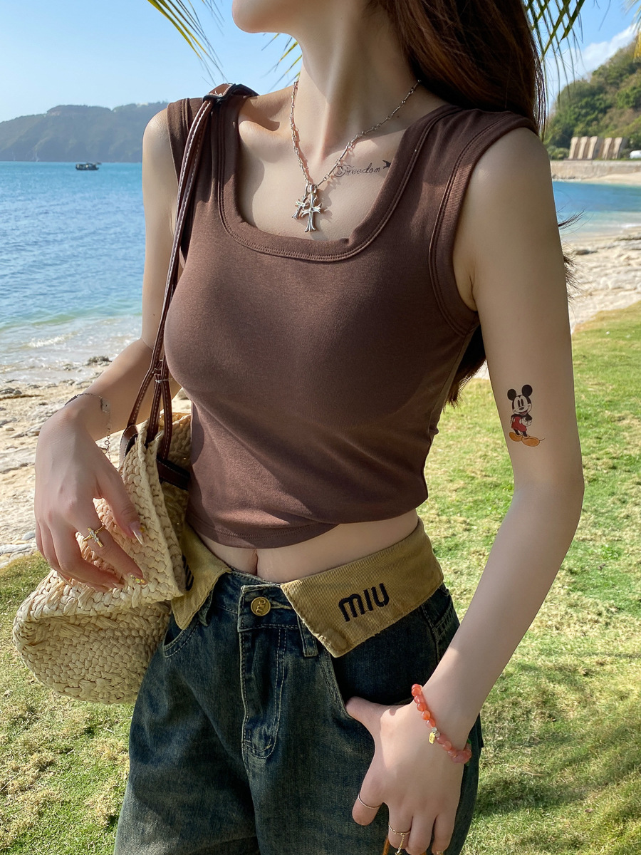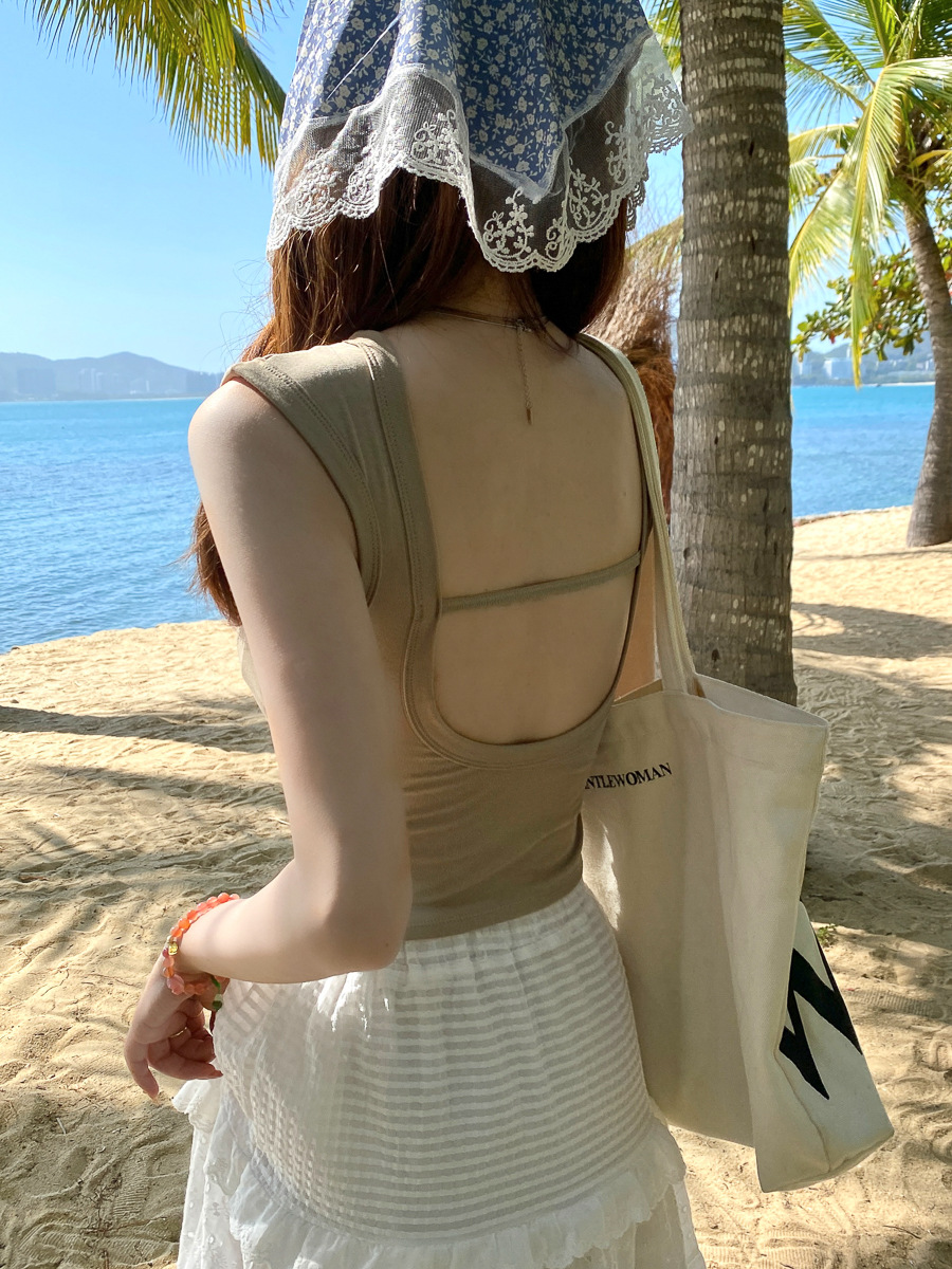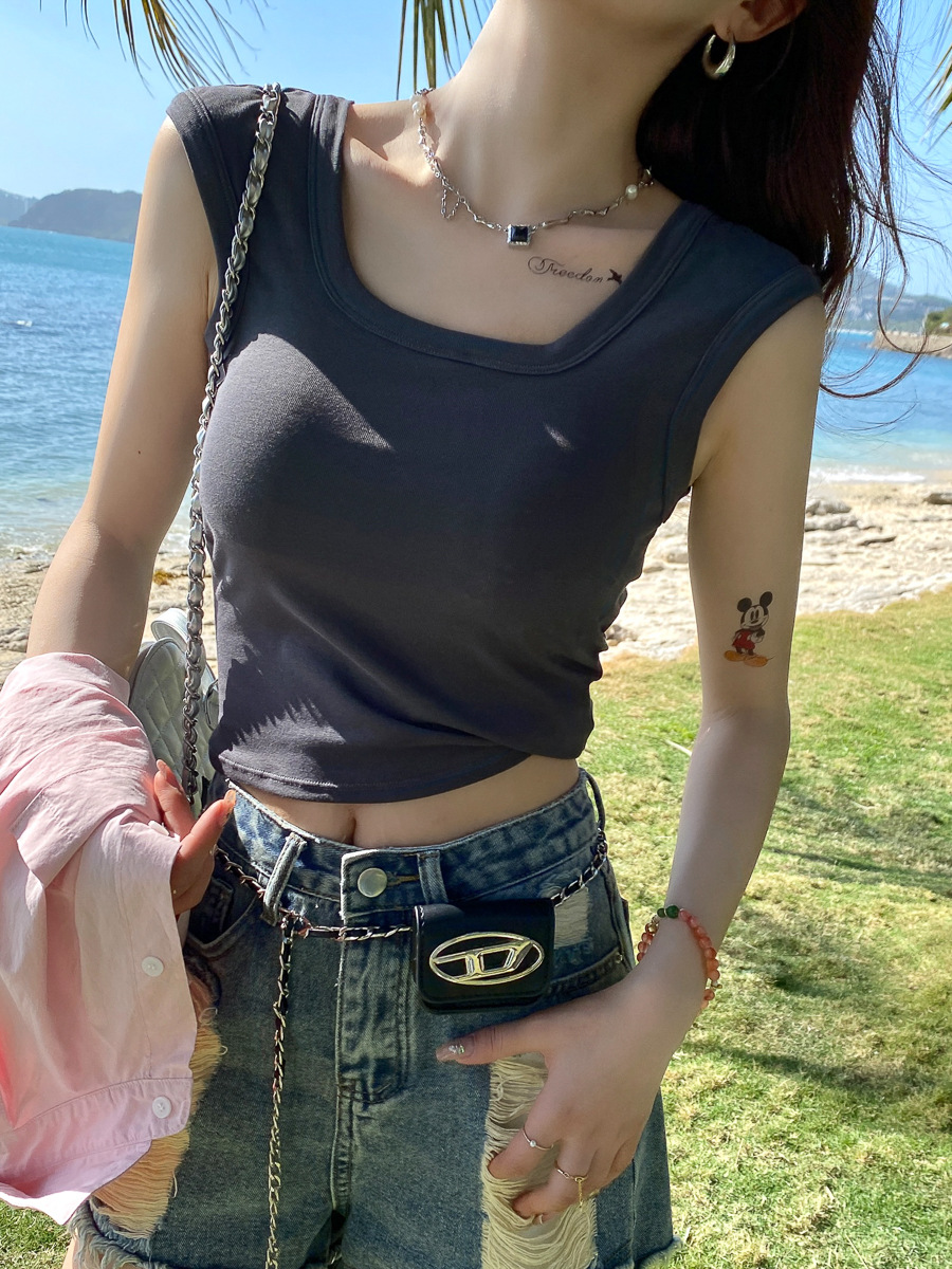 美式浅绿色无袖外穿吊带小背心女夏季新款修身显瘦短款上衣服