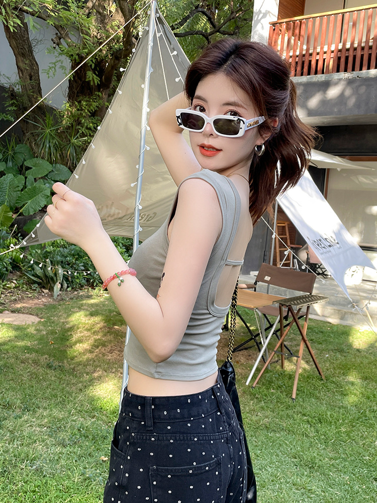 美式辣妹风吊带背心女夏季新款设计感交叉短款露腰外穿上衣欧货潮