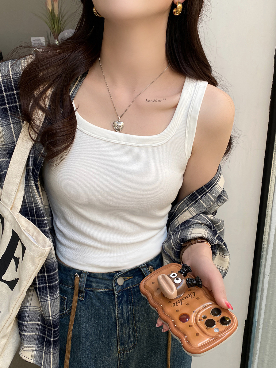白色吊带背心女夏季新款内搭外穿纯棉遮副乳宽肩带打底多巴胺上衣